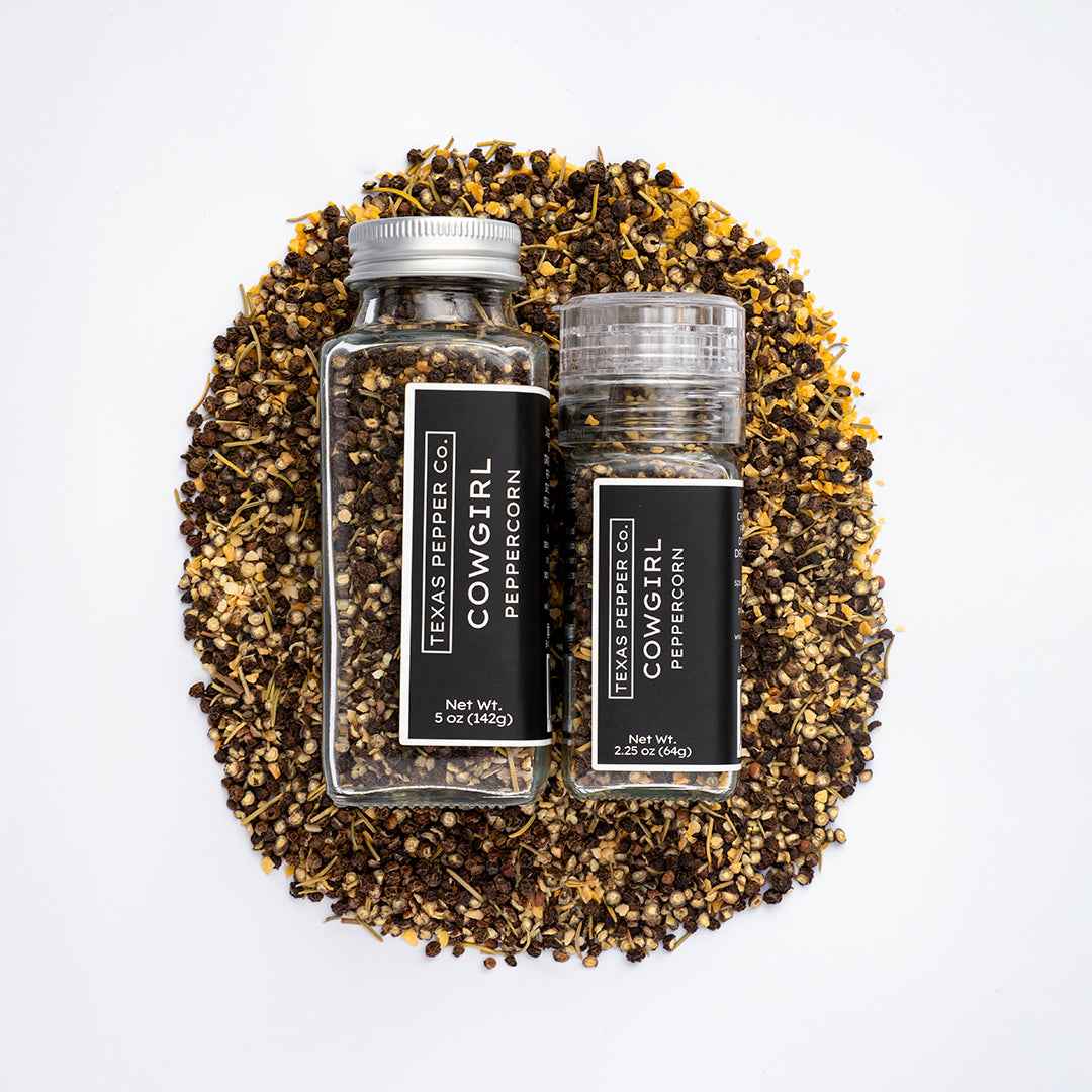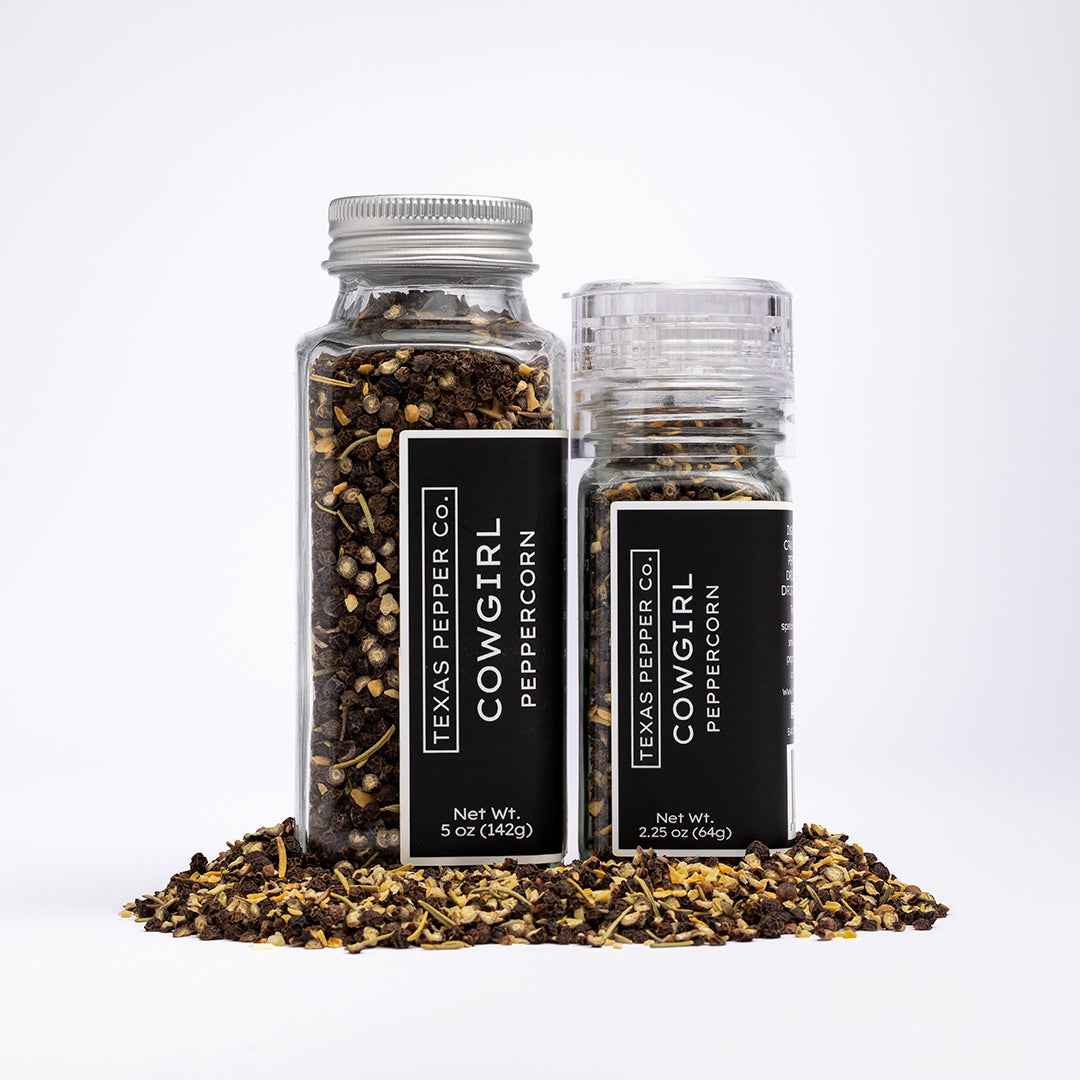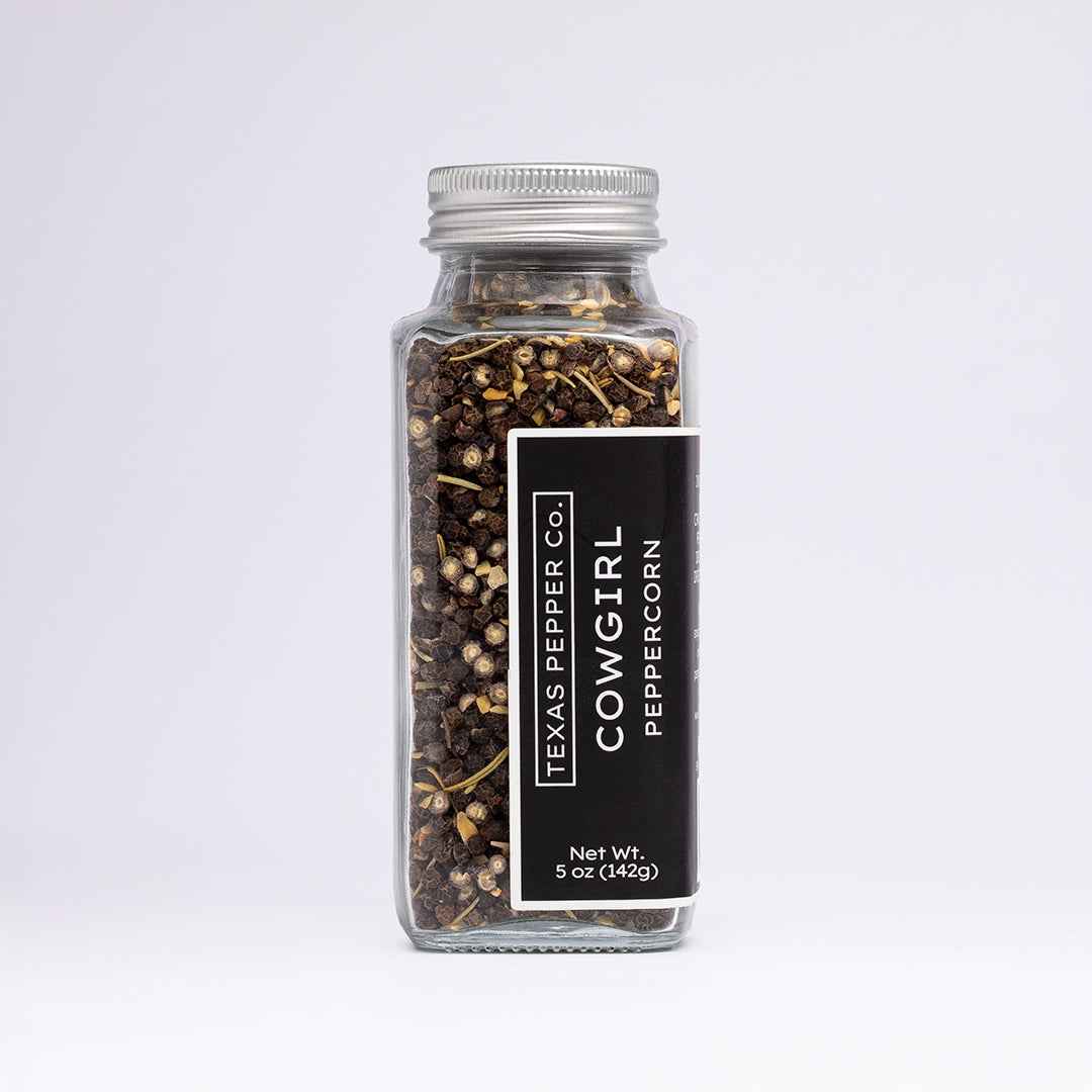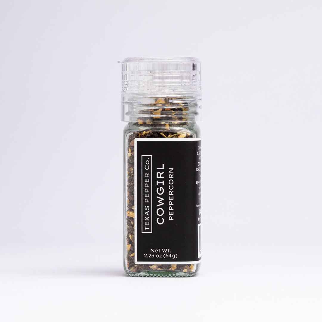 Experience bold flavors with Cowgirl Peppercorn. Made with cracked black peppercorn, dried garlic, and rosemary, this robust blend will take your cooking to the next level. Plus, the standard sizes comes with a grinder, so you can enjoy fresh flavor anytime! Spice up your kitchen today! This is an unsmoked version of our Cowboy Peppercorn.