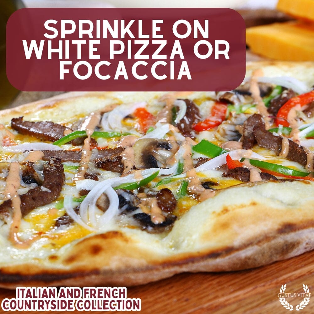 Taste of Tuscany: Basil, Oregano, Red Bell Peppers, Garlic, Green Bell Peppers, Black Pepper, Fennel and Rosemary.