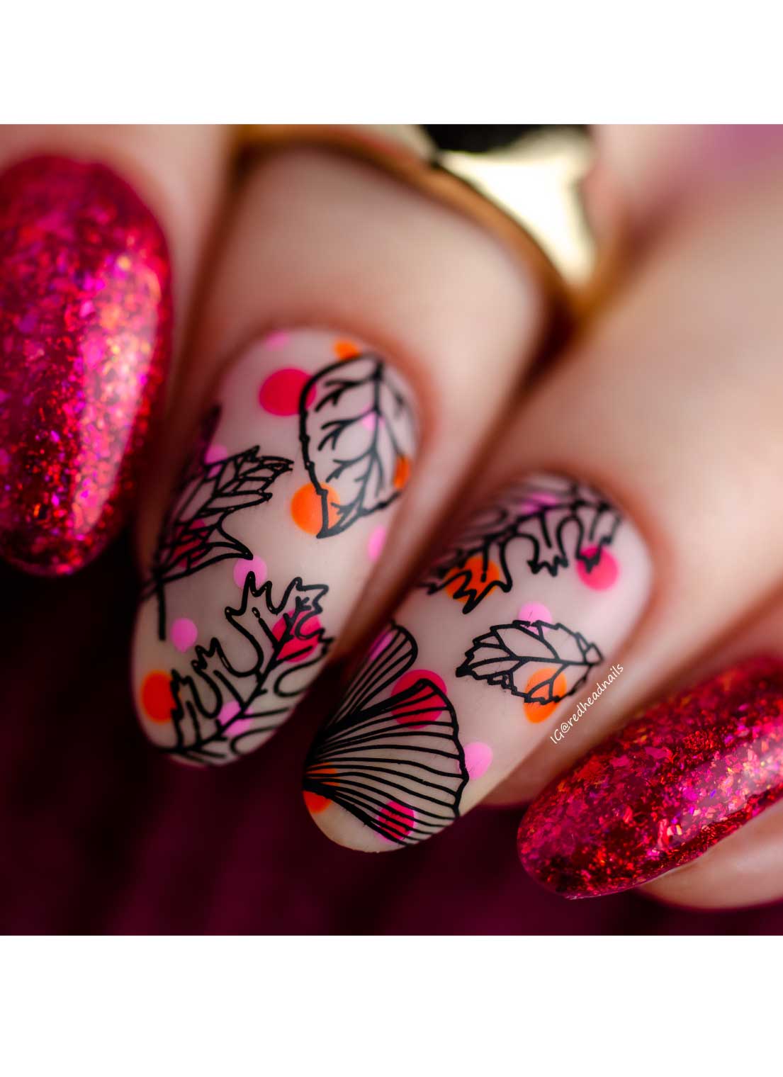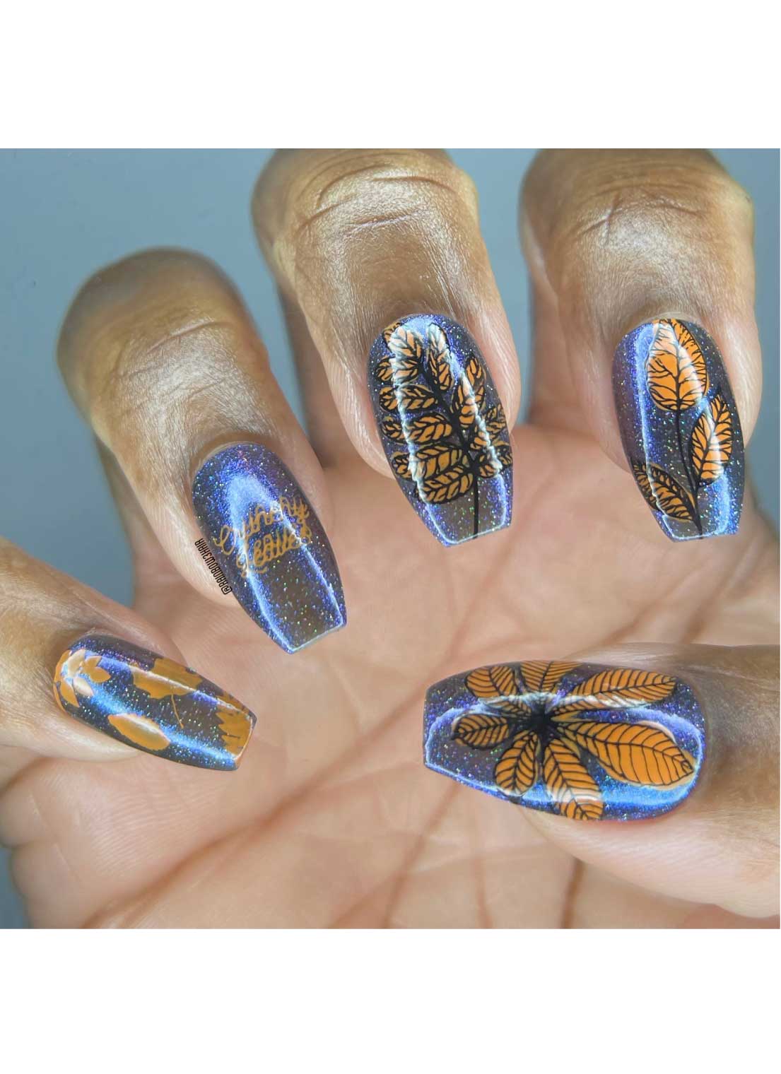 Hello Autumn and crunchy leaves! Complete your fall-loving plate collection with our newest addition! We added some larger leaves to this plate so you can mix and match to your heart’s content! Plus: be sure to check out the tree bark and leaf textures to give your mani even more interest.