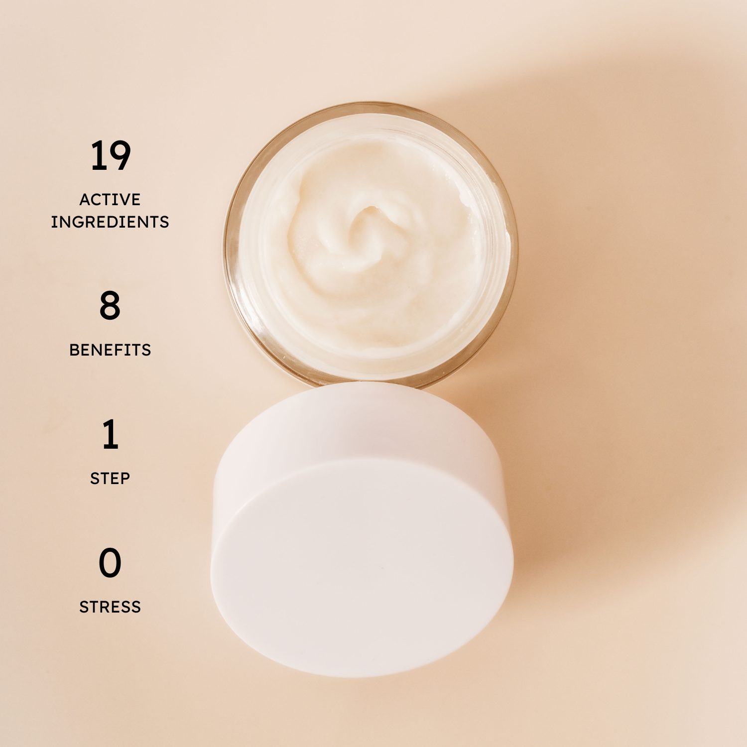 A multitasking night cream delivering 8 benefits in 1 easy step.
