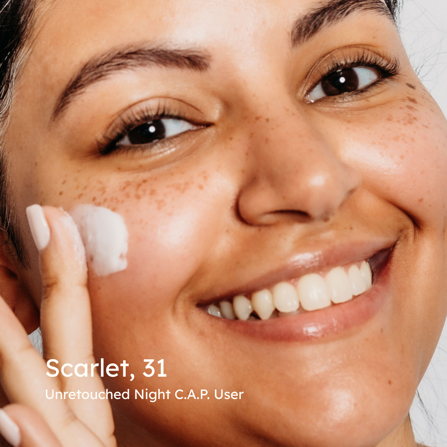 After 5+ years of research and development, Night C.A.P. was born — a multitasking moisturizer that simplifies your shelf, your routine, and your life.