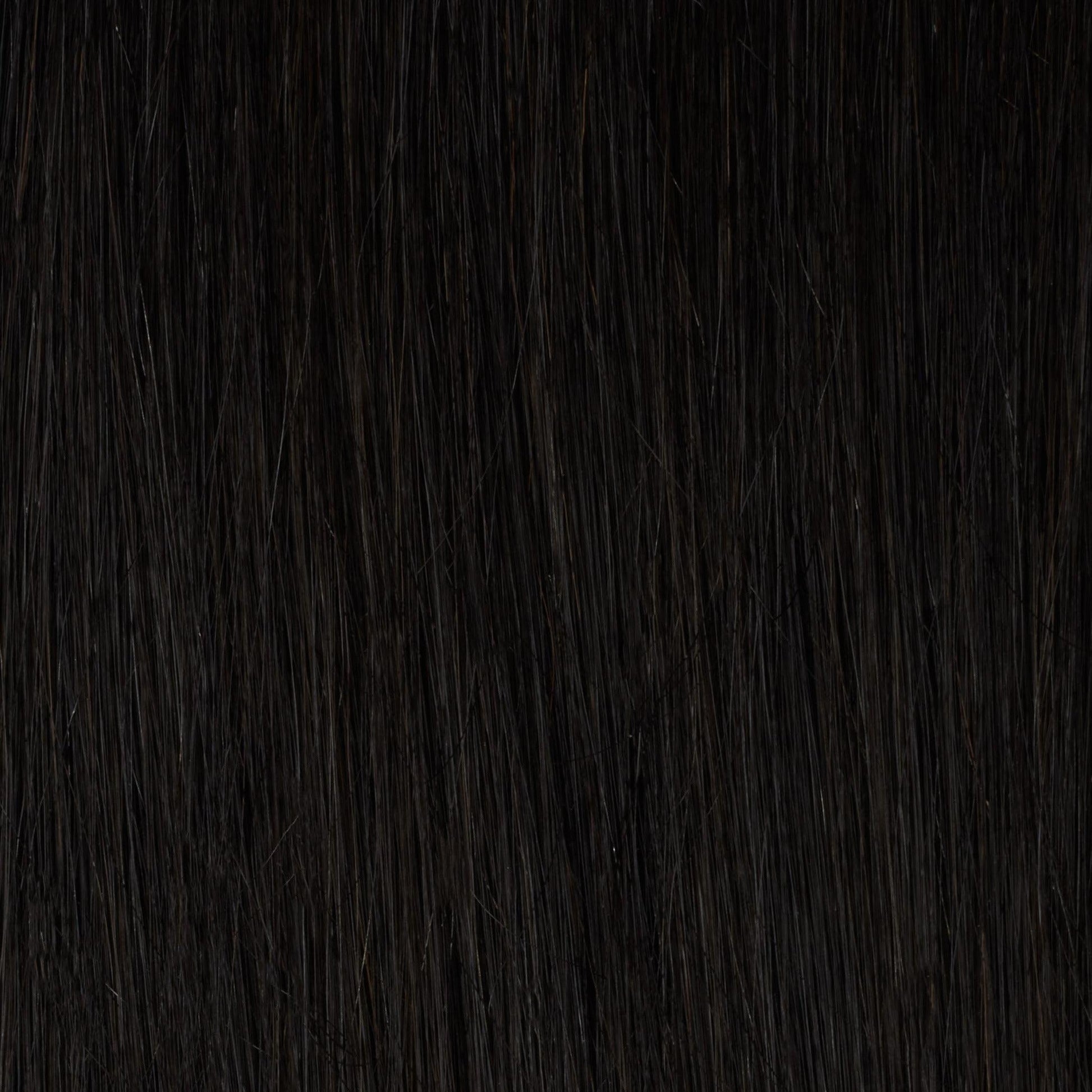 Our best-selling Off Black clip-in extensions feature a soft, natural black shade with subtle brown undertones — perfect for those who want a rich, dark look without the harshness of jet black. Flattering on most skin tones, this versatile color blends seamlessly with naturally dark hair, offering a polished, full-bodied finish with effortless dimension.