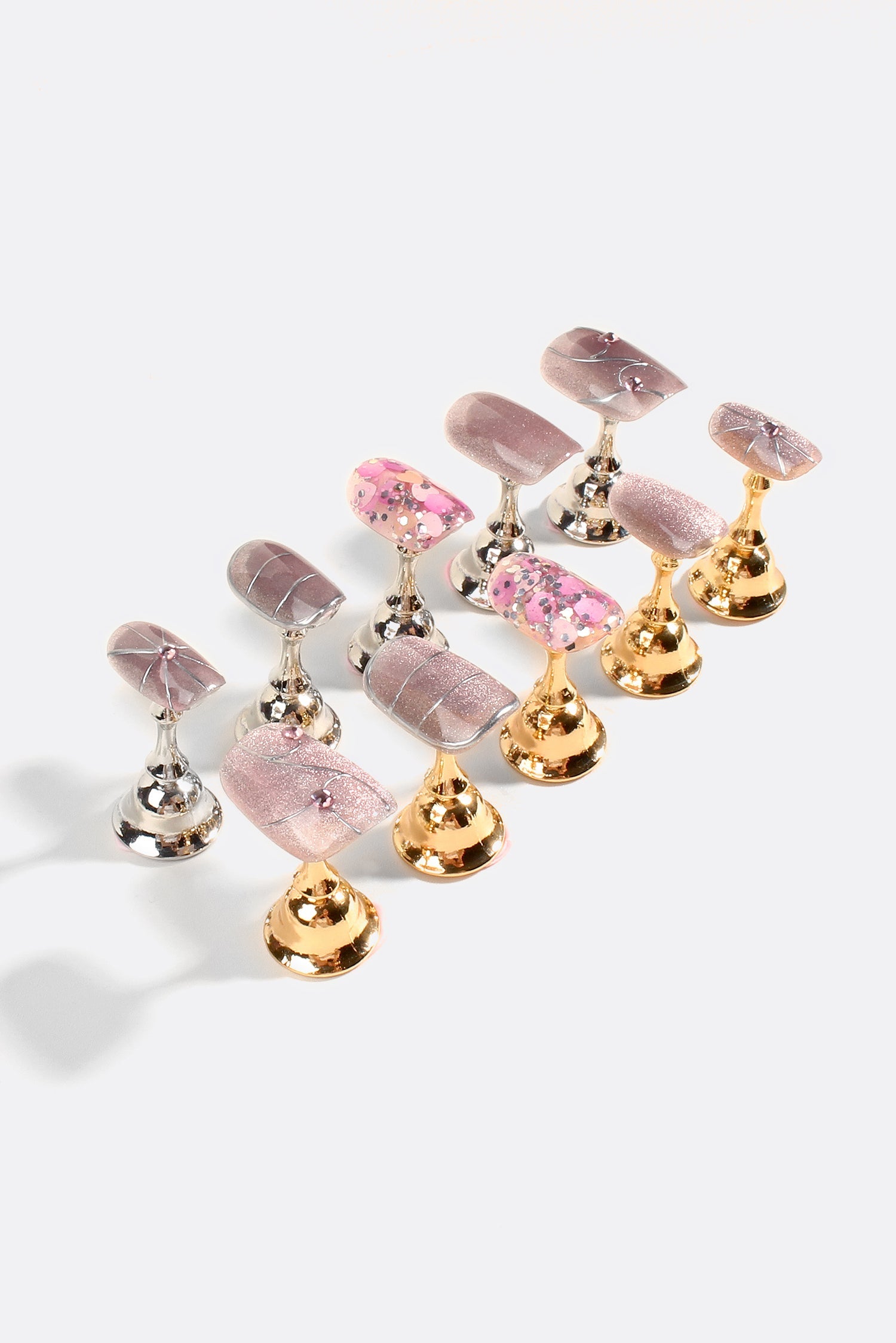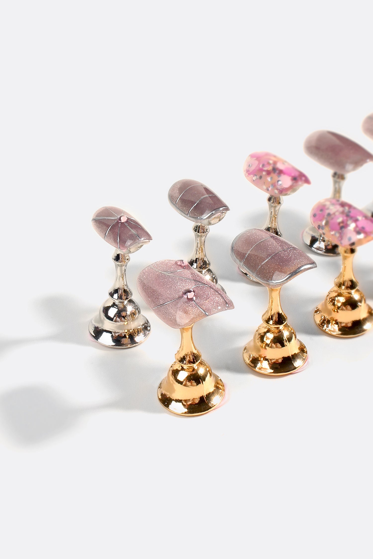 Moving beyond the traditional constraints of 'XS, S, M, and L' sizes, our approach prioritizes individual fit and precision. With our specialized collection, you receive 20 nails across 10 distinct sizes. From dainty fingertips to a bolder width, every hand finds its ideal match.