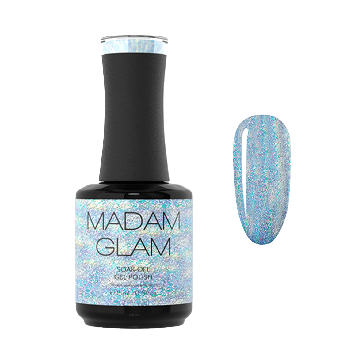 Your nails will love this holographic gel, you will shine all night long in this blue-ish silver white!