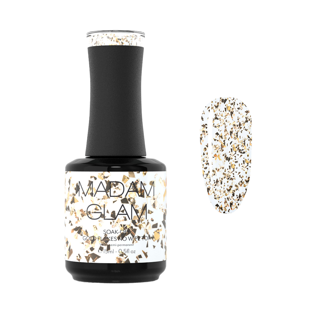 Treat you inner Goddess with a a new No Wipe Top Coat with Gold Flakes that will transform your nails into solid gold