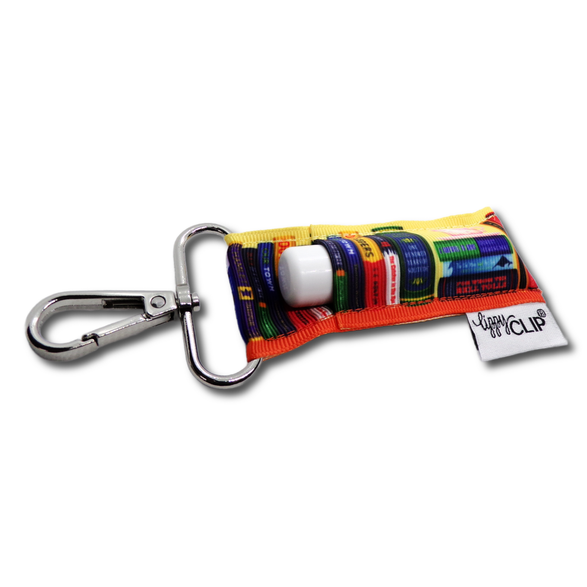 The LippyClip® perfectly holds cylindrical lip balms such as Chapstick, Carmex, Blistex and Burt's Bees, and easily clips on a keyring, purse hardware, diaper bag, backpack, etc. Please note that lip balm is not included.