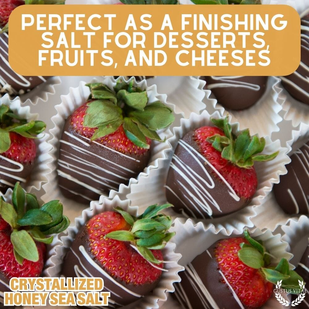 Tendrás que perdonarnos el juego de palabras, fue demasiado fácil. Lo difícil es descubrir cuál es tu forma favorita de usar esta sal marina: ¿como un delicioso espolvoreado sobre helado? ¿El mágico espolvoreado sobre pescado blanco justo antes de servir (¡te sorprendería!)? ¿Espolvoreado sobre palomitas de maíz recién hechas? Podríamos seguir, pero eso le quitaría (algo de) la diversión. Nuestra sal marina de miel cristalizada es increíblemente versátil como sal de acabado y seguro que se convertirá en una de las armas secretas de tu cocina. Nuestras favoritas: elevando un plato de frutas a nuevas alturas, como un espolvoreado caramelizante sobre salmón justo antes de hornear o asar a la parrilla, espolvoreado sobre queso azul para, de alguna manera, bajar el ruido, y como el mejor borde de margarita que hayas probado.