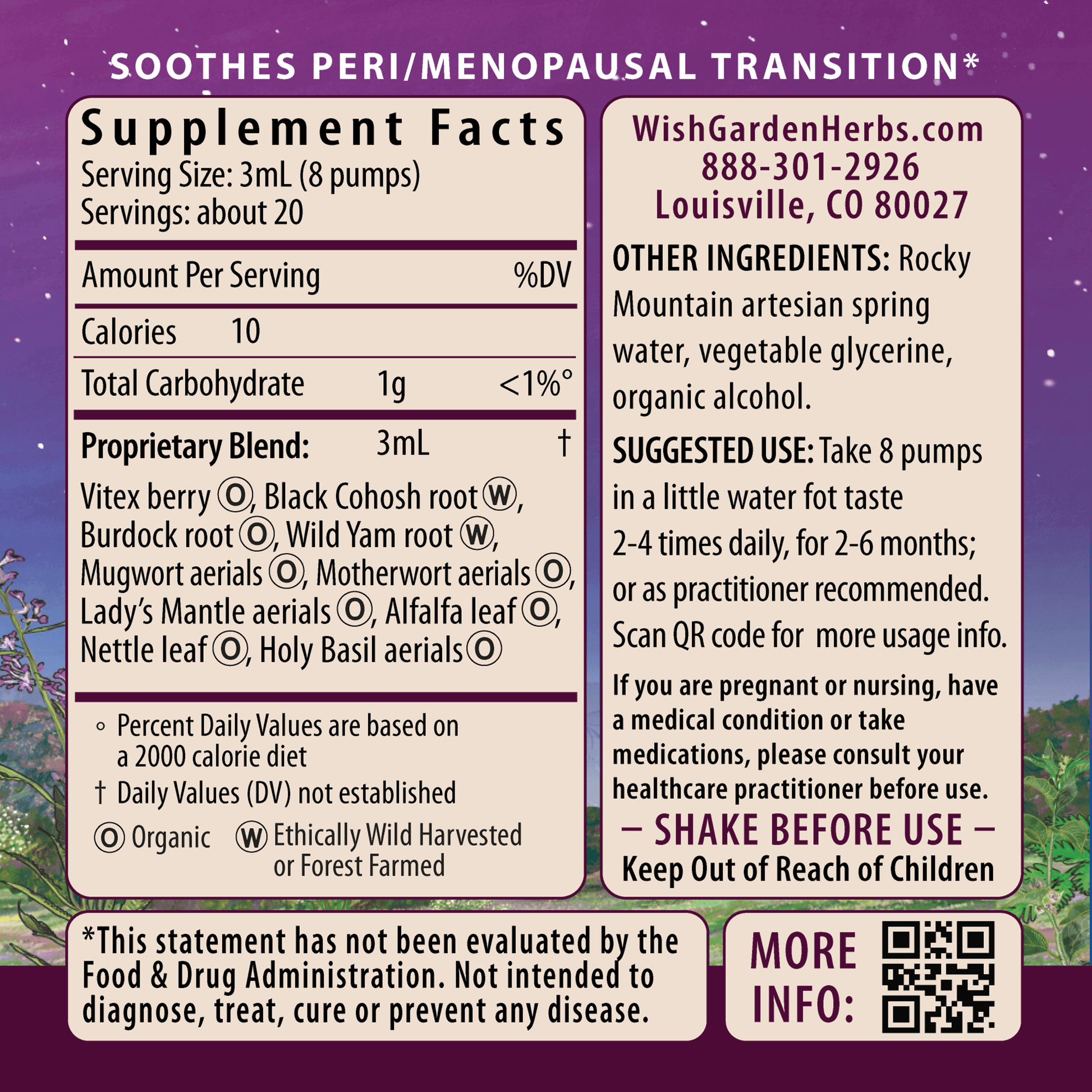 By supporting normal hormone changes, WishGarden Herbs' Cycle Changes Peri/Menopause (formerly named Wise Changes Reproductive Tonic) helps a woman's body find its natural rhythm during menopause. Let the wisdom you've earned flow through a body that is as comfortable as it is wise.
