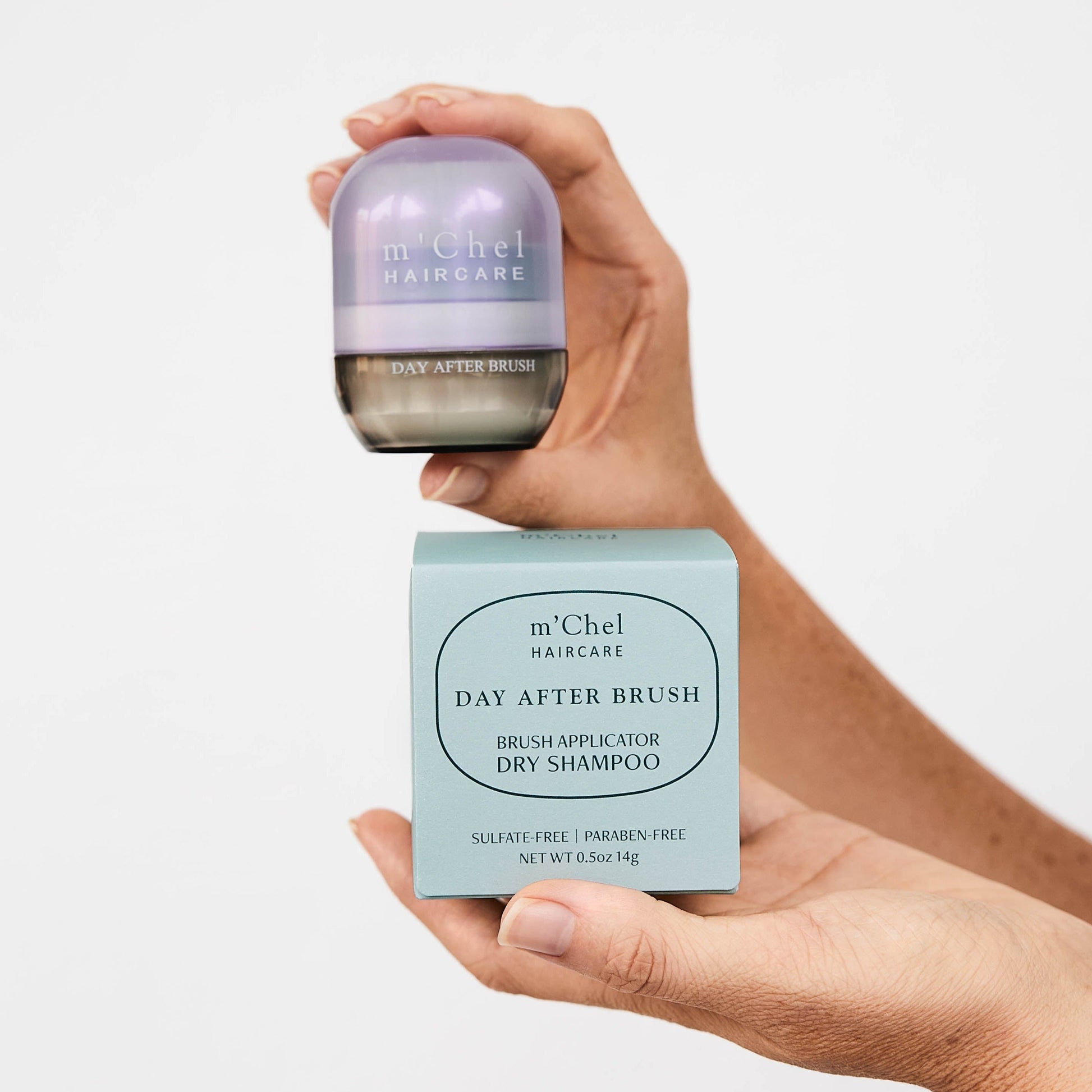 Our Day After™ Brush dry shampoo safely deodorizes, removes oil, and leaves the hair looking freshly washed