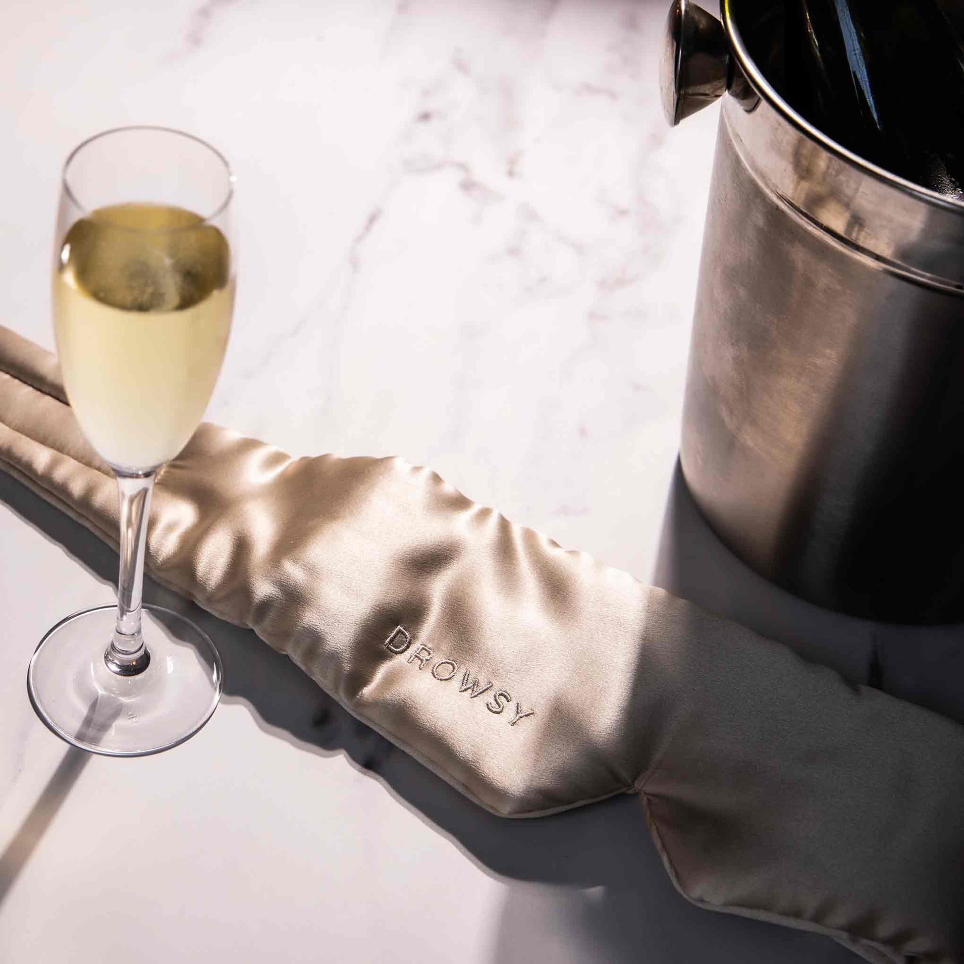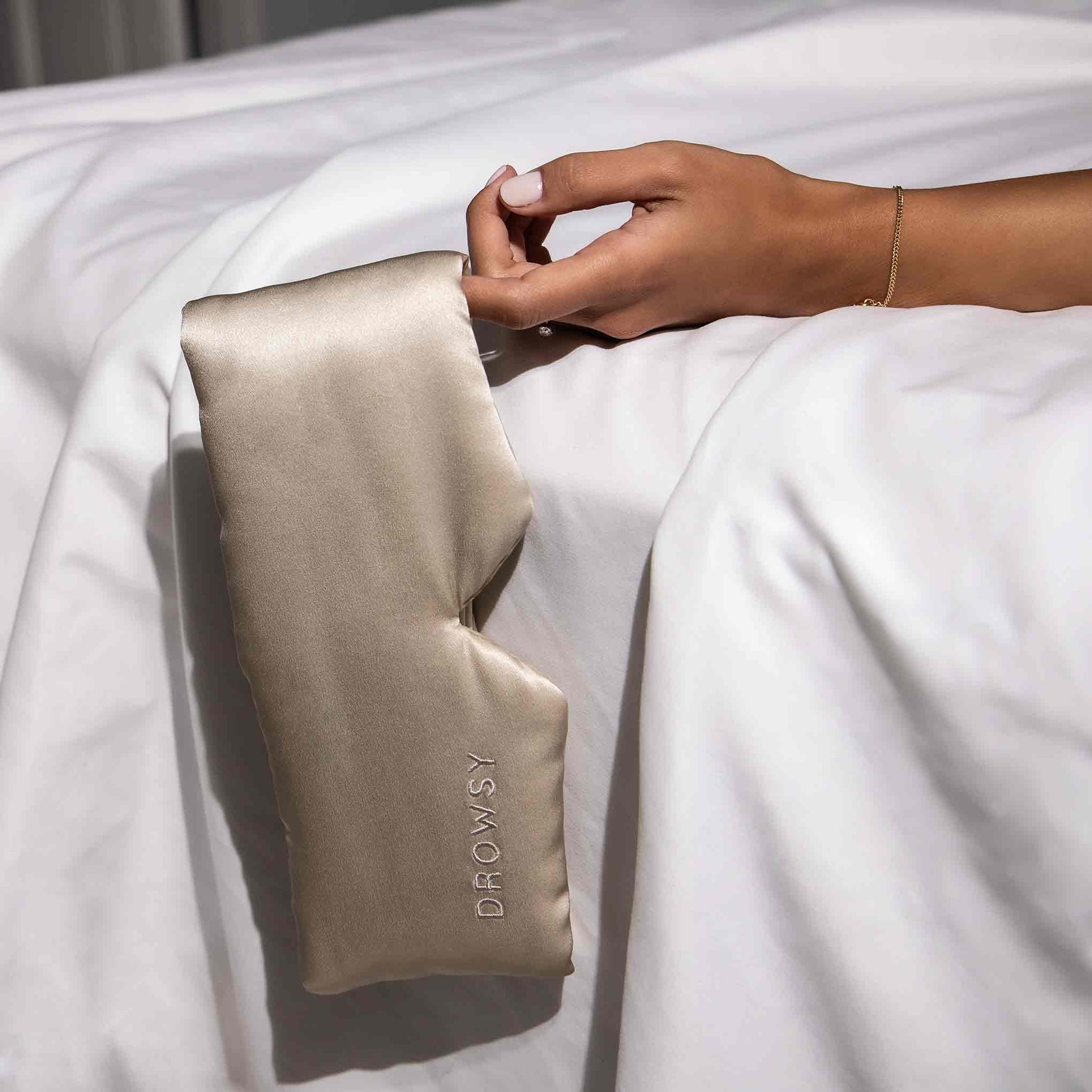 Diseñada magistralmente por Drowsy para una máxima comodidad. Usa esta lujosa mascarilla de seda color champán para un sueño reparador y reparador cada noche. Ofrece el descanso perfecto para la vista cansada.