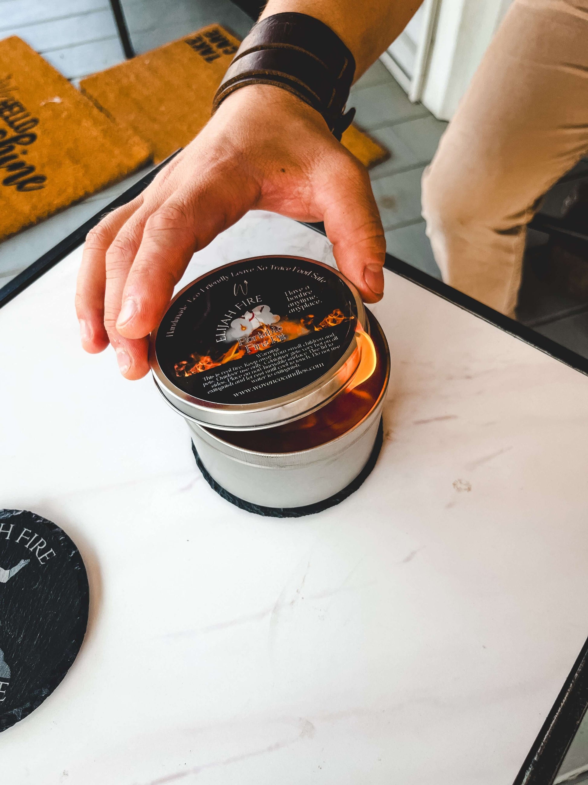Use the Elijah Fire Slate Hot Plate to protect surfaces from the heat of your bonfire