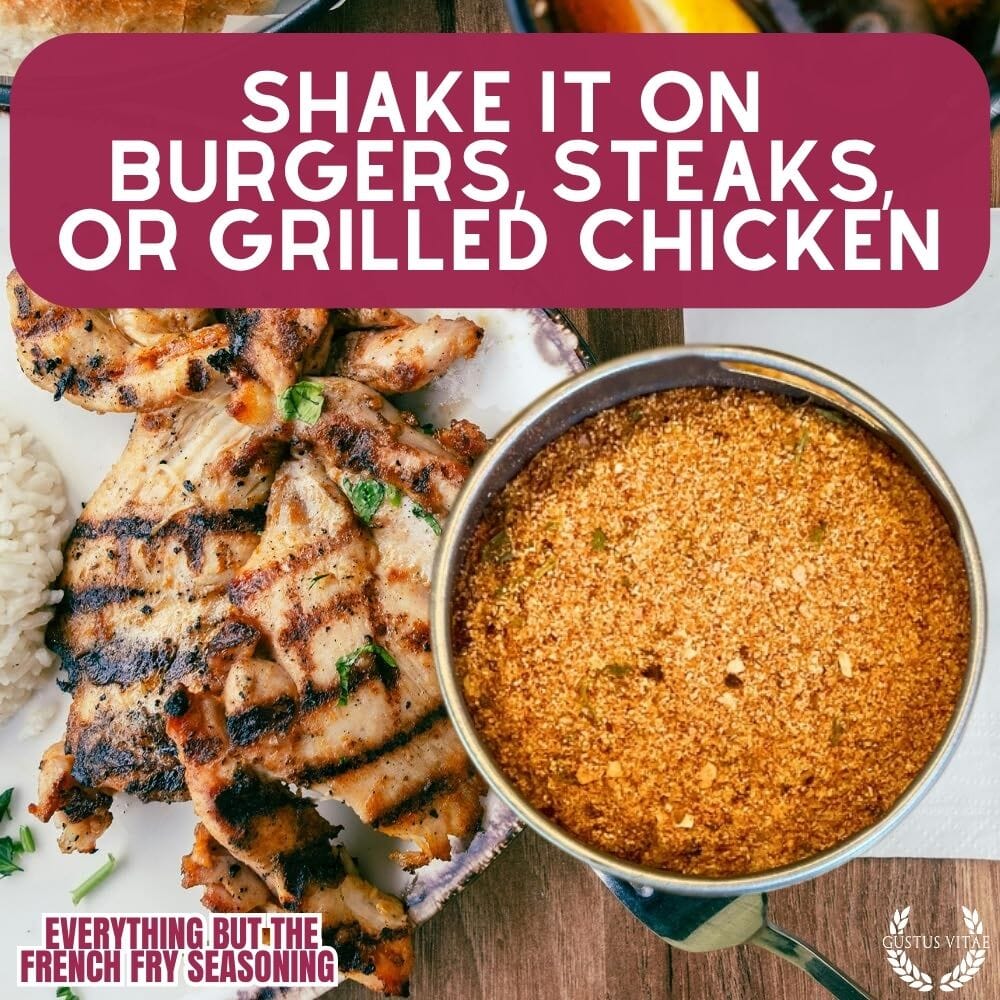 No solo para papas fritas, esta mezcla artesanal de lotes pequeños es súper versátil y es maravillosa para usar como adobo, marinada y condimento final. Ya sea que esté asando jugosos filetes o asando verduras en el horno, nuestro condimento llevará sus creaciones culinarias al siguiente nivel.