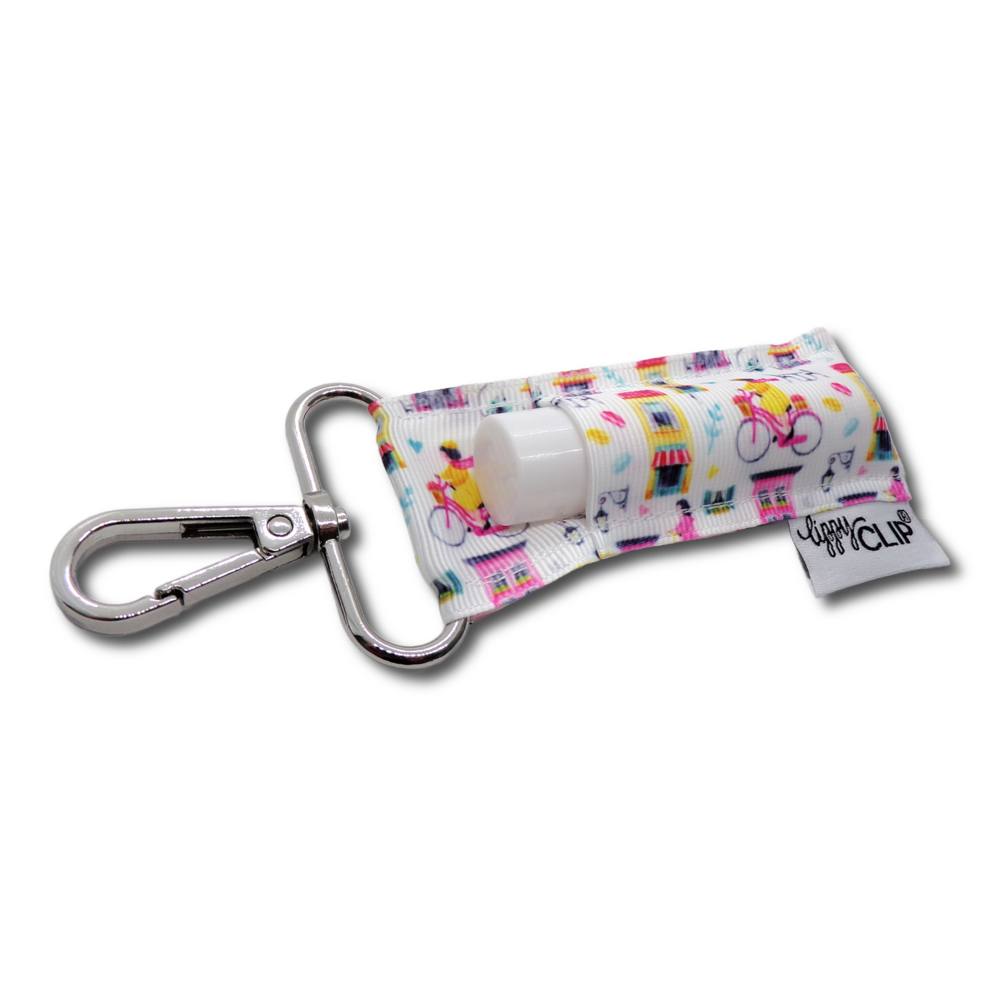 The LippyClip® perfectly holds cylindrical lip balms such as Chapstick, Carmex, Blistex and Burt's Bees, and easily clips on a keyring, purse hardware, diaper bag, backpack, etc. Please note that lip balm is not included.