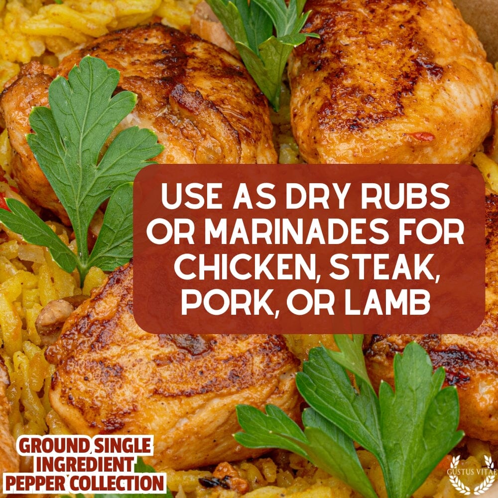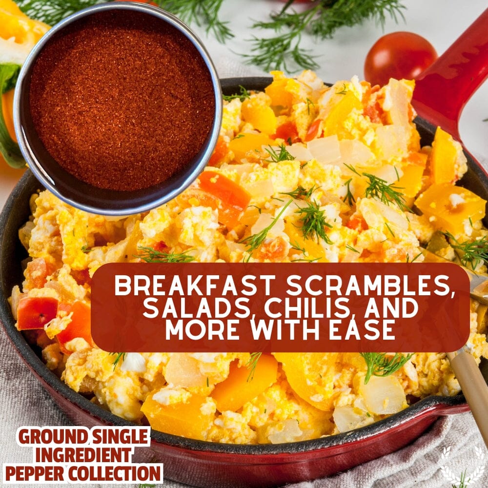 Our collection is not just about exquisite tastes; it's about versatility and the freedom to experiment. Whether you're starting the day with a spicy scramble, jazzing up a lunchtime salad, or ending the day with a hearty chili, these gourmet peppers are your ticket to a world of flavor. From everyday dishes to special occasion meals, their range of heat and flavor can transform the ordinary to extraordinary. Upgrade your spice rack with our gourmet ground pepper collection and discover the joy of cooking with these versatile, high-quality spices. Experience the difference of premium quality and taste the potential in every pinch with our ground pepper collection, the ultimate companion for the home cook.