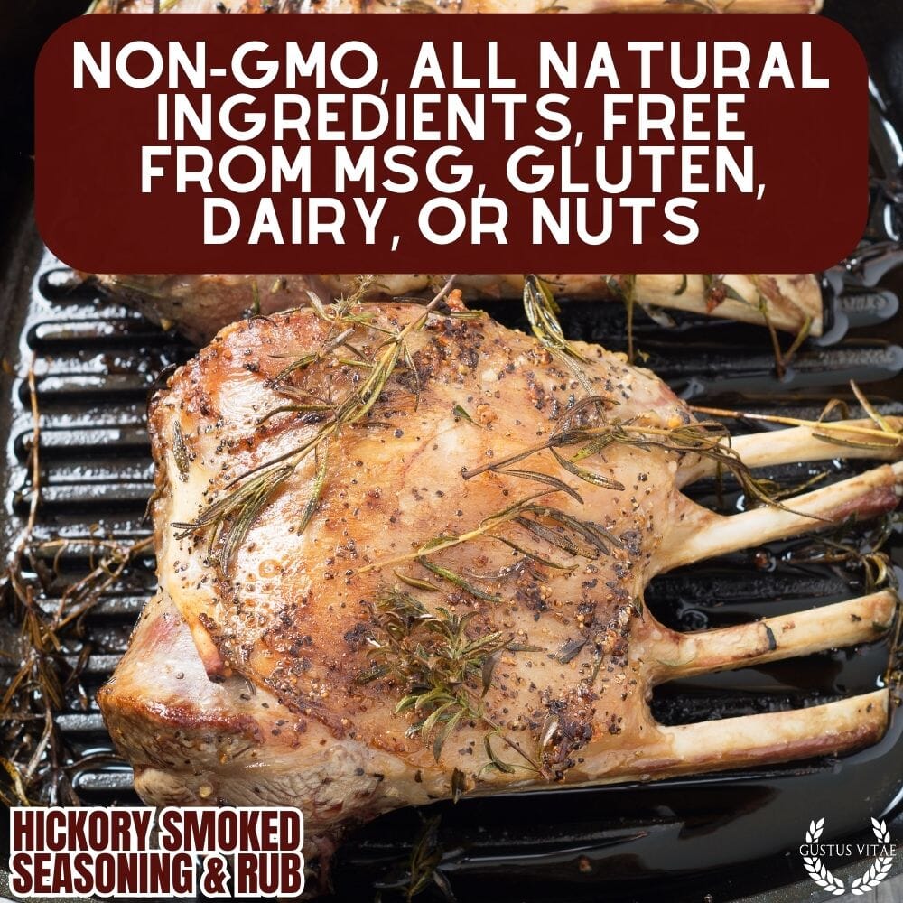 El condimento ahumado de nogal contiene: sal marina, polvo de humo de nogal, pimentón español, cayena, azúcar de caña, ajo.