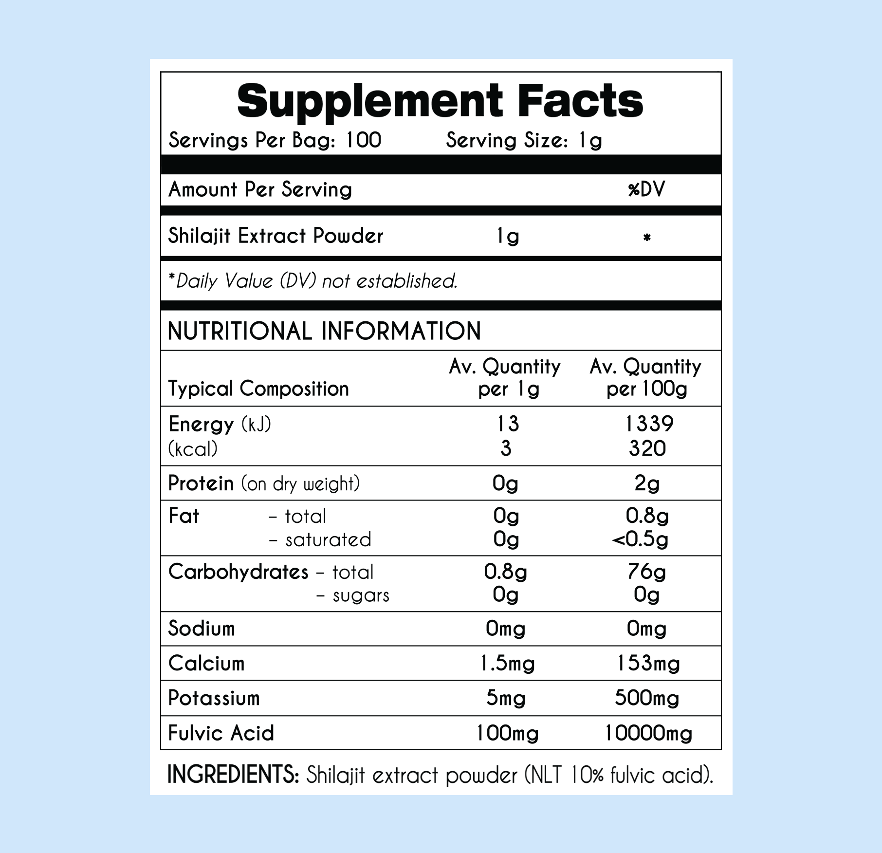 Our Himalayan Shilajit powder is a pure and potent mineral extract sourced from the pristine heights of the Himalayas. Revered in Ayurvedic medicine, this natural substance is rich in fulvic acid, humic acid, and over 80 essential trace minerals. It supports increased energy, enhanced stamina, and overall vitality, promoting strength and longevity. Our Shilajit is lab-tested to ensure maximum purity and potency. It is unflavored, free from artificial additives, vegan, and gluten-free.