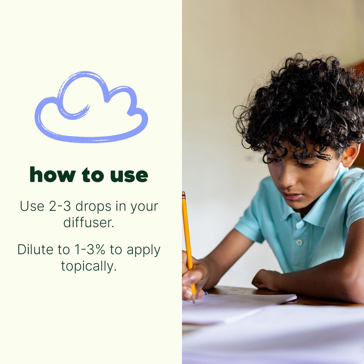 Hocus Focus was developed to help support focus and fight fidgeting, enabling your child to concentrate and stay on task. Lime Steam Distilled, Bergamot, and Petitgrain are uplifting and energizing, helping promote alertness, while Atlas Cedarwood and Roman Chamomile are soothing and calming to the mind and body. Vetiver is renowned for its ability to bring balance and alleviate the "mind chatter" which can cause children to lose focus on the task at hand.