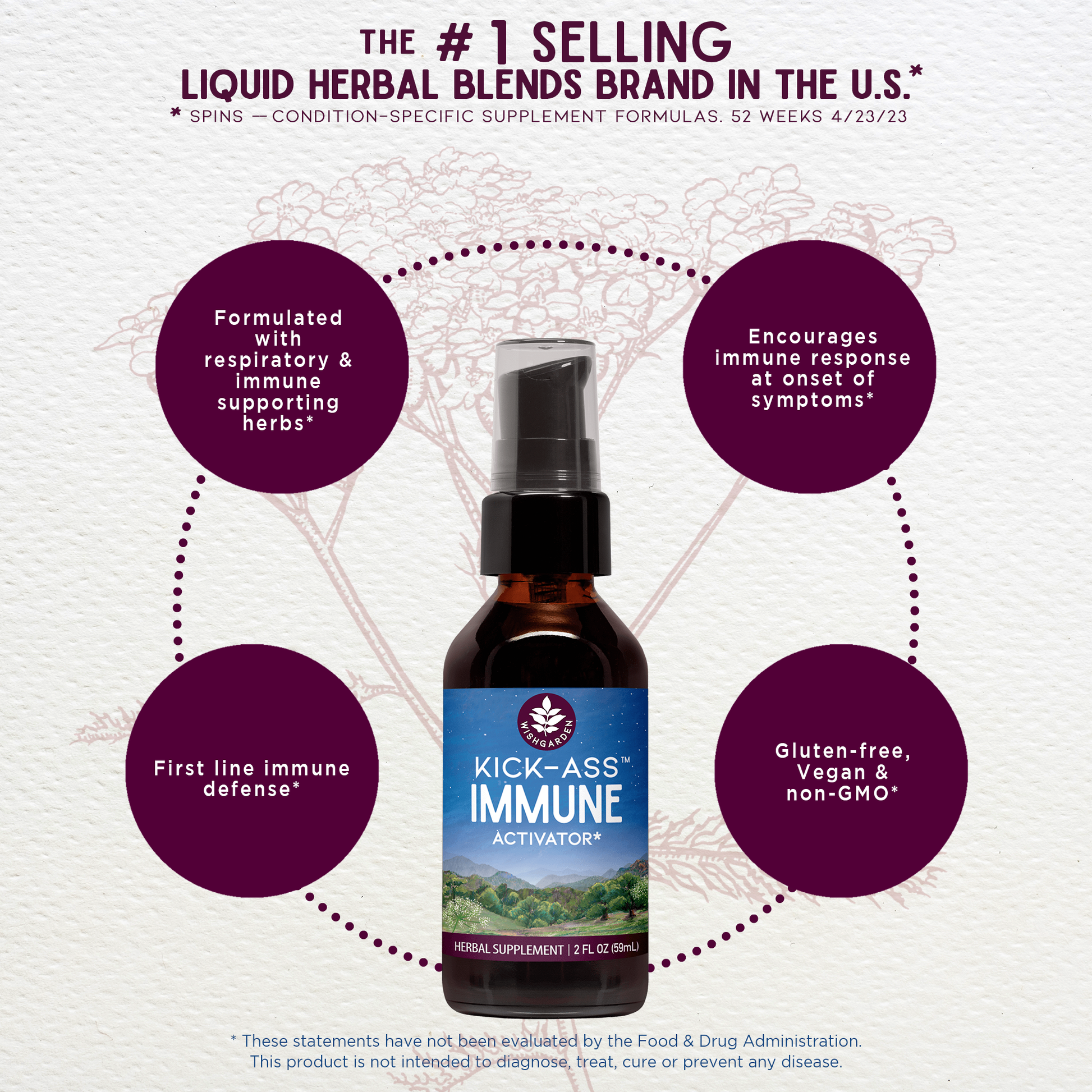 Starting to feel run down? Got that horrible feeling of knowing you're about to get sick? Kick-Ass Immune is a stellar team of respiratory and immune supporting herbs that promote a healthy immune system response and serve as a first line of defense to whatever is trying to creep in. Kick-Ass before your ass gets kicked!