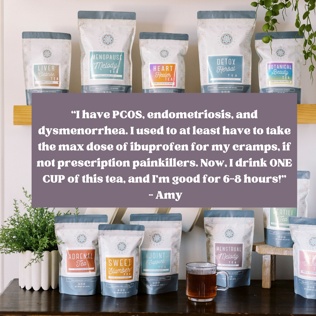 Harmonize Your Cycle Naturally! Menstrual Melody is a carefully crafted herbal blend designed to support women during their menstrual cycle. Reduce PMS, bloating, nausea, heavy bleeding, cramping and more! Crafted with a combination of potent botanicals, including Shepherd's Purse Leaf, Motherwort Leaf, Yarrow Flower, Nettle Leaf, Burdock Root, Red Raspberry Leaf, Ashwagandha Root, Peppermint Leaf, citrus peel, and Stevia Leaf, this unique formula offers a harmonious symphony of natural relief.