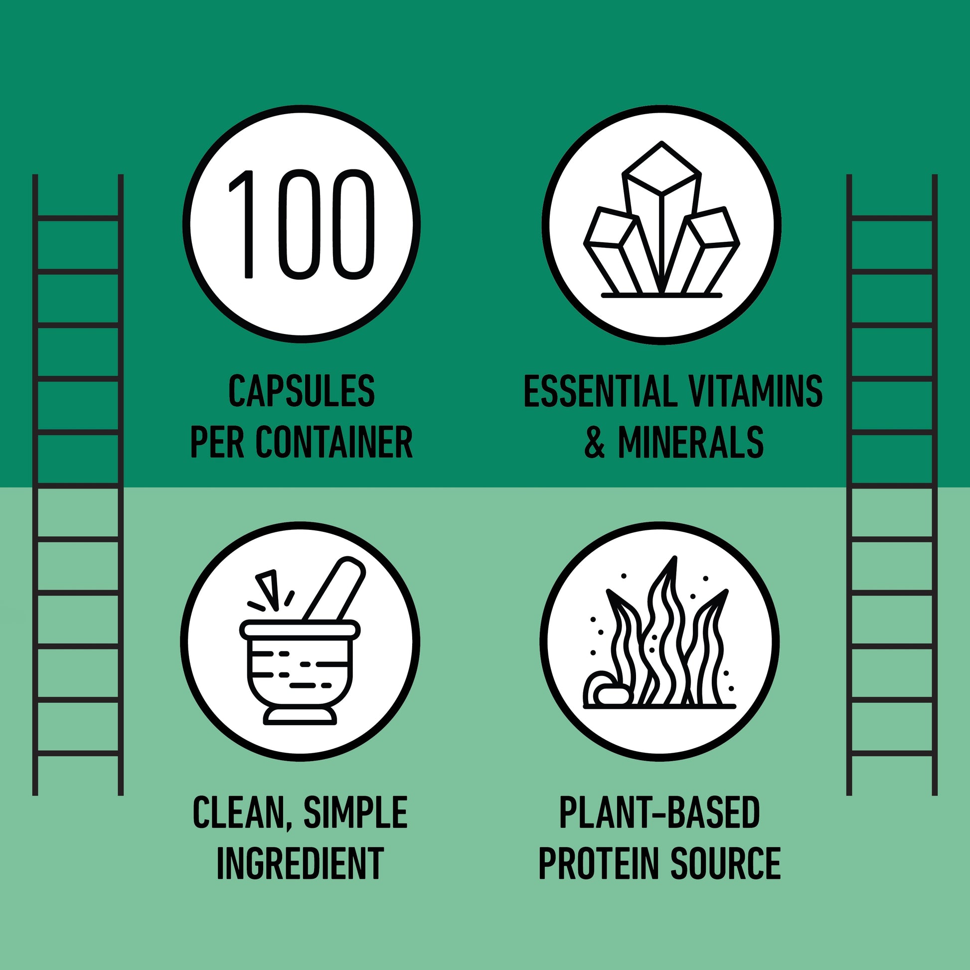 Nuestras cápsulas de espirulina orgánica están elaboradas con espirulina orgánica pura de la más alta calidad, que aporta aminoácidos esenciales, nutrientes esenciales y antioxidantes. Lleva tu nutrición al siguiente nivel con nuestras cápsulas veganas y obtén los nutrientes vitales que tu cuerpo necesita. Nuestras cápsulas no contienen químicos ni conservantes, lo que significa que puedes confiar en que estás recibiendo un suplemento seguro y saludable.