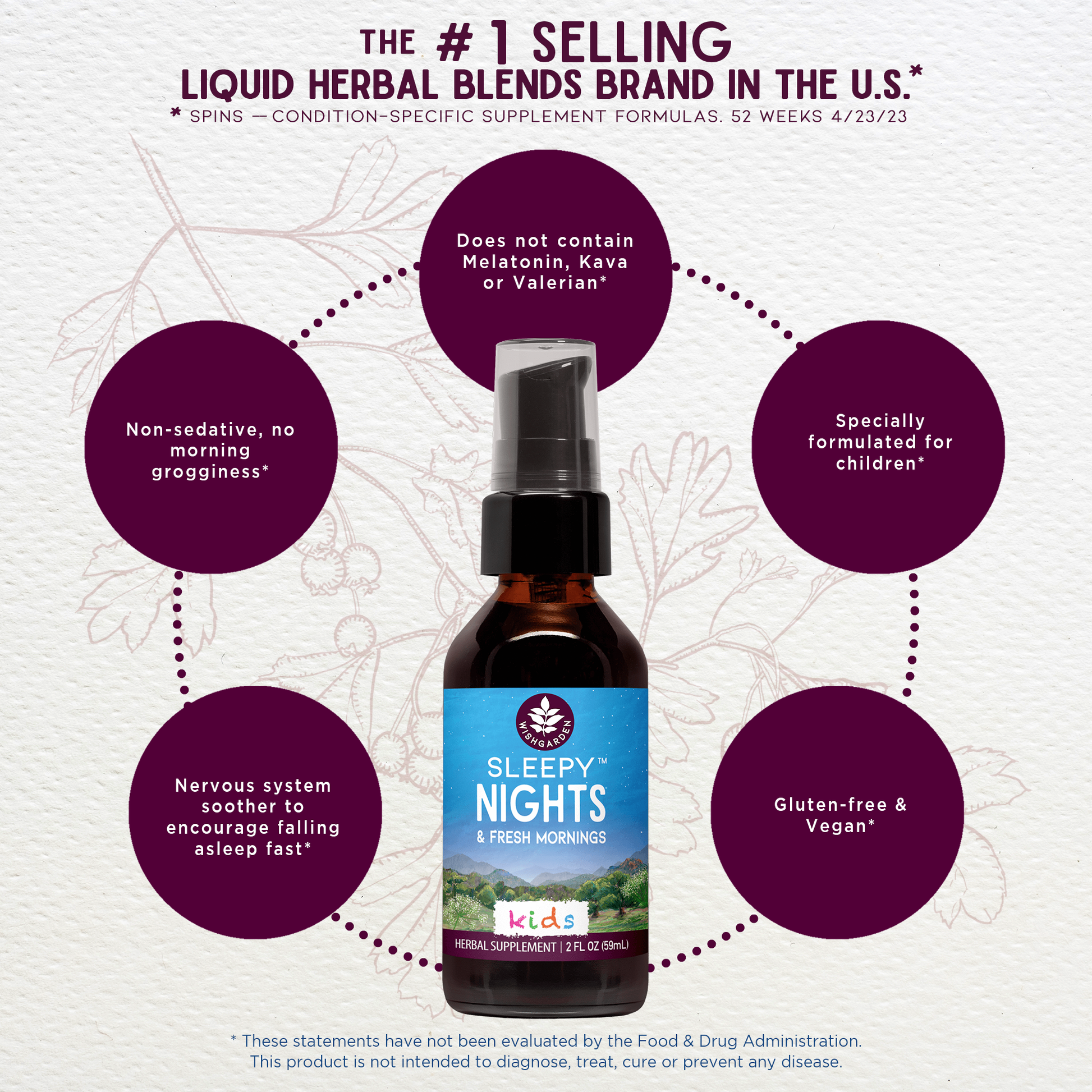Sleepy Nights & Fresh Mornings For Kids is a non-sedative, sleep support formula designed with small bodies in mind. This gentle, but effective, sweet-tasting formula is the perfect ally to help your little one at nap time or bedtime. Sweet dreams, sweet one.