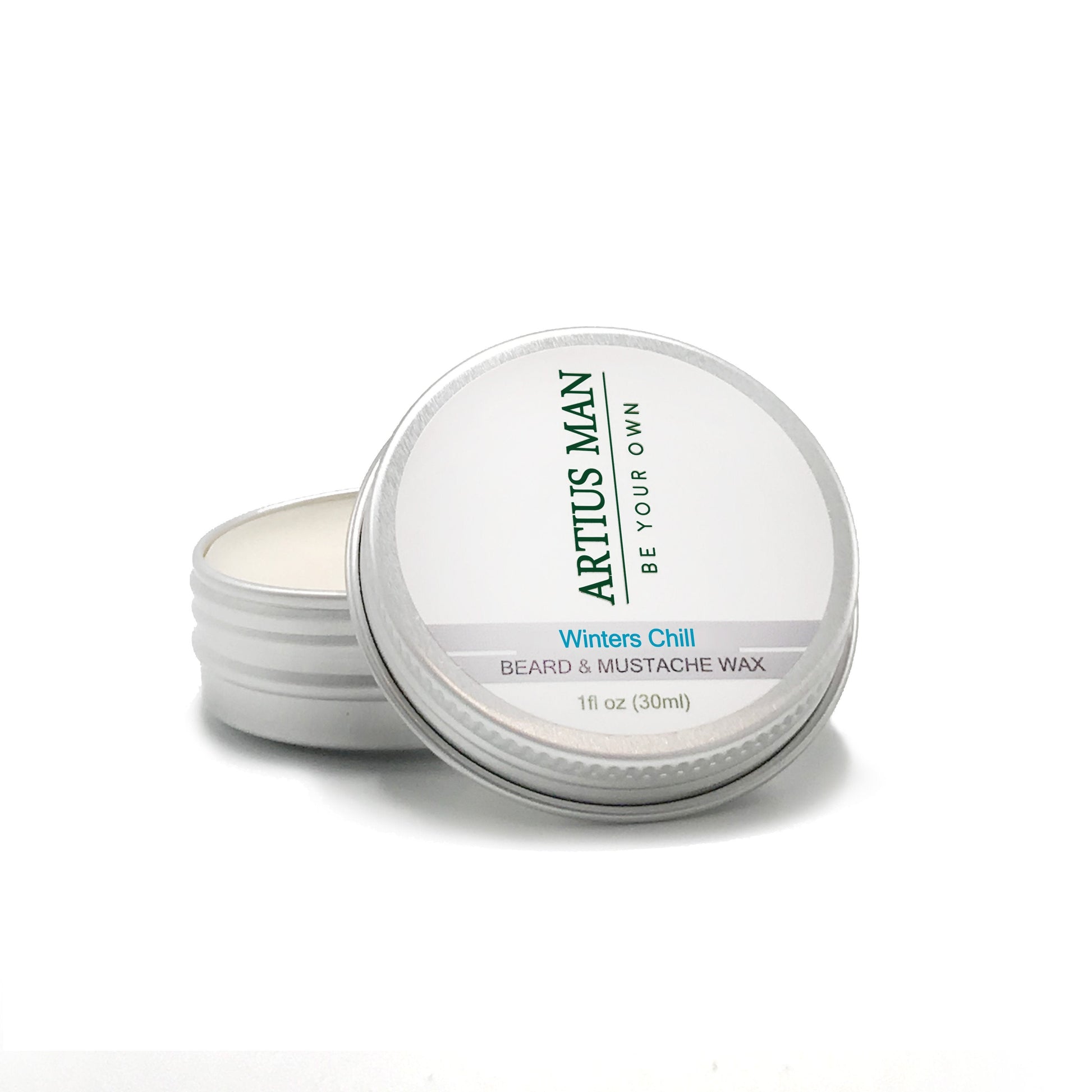 This is our Winter's Chill Beard & Mustache Wax. Our mustache and beard wax provides a firm hold for your beard and mustache.