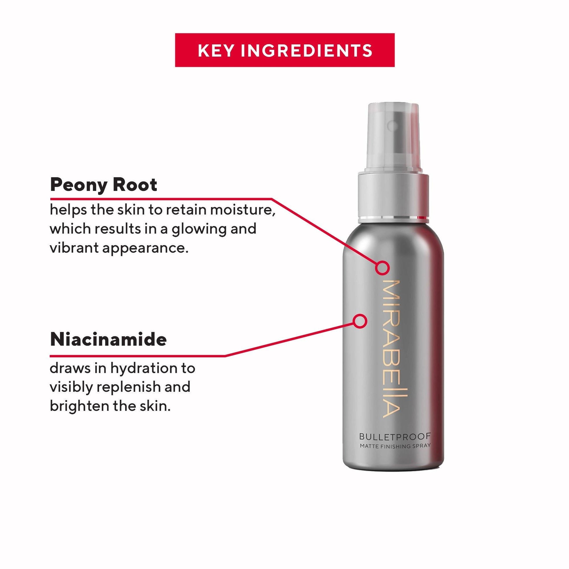 Achieve all-day, shine-free perfection with Mirabella Beauty's Bulletproof Matte Finishing Spray. This lightweight, long-lasting setting spray locks in your makeup while delivering a flawless matte finish — proven by clinical results. With 98% of users experiencing 12-hour makeup wear and 92% noticing reduced fine lines and minimized pores, this weightless mist is your secret weapon for a smooth, professional look. Infused with Peony Root for its anti-inflammatory and antioxidant properties, plus Niacinamide for brightening, and PVP for ultimate makeup hold, it’s suitable for all skin types. Say goodbye to unwanted shine and hello to bulletproof beauty. ✨ Shop now and make your makeup last!