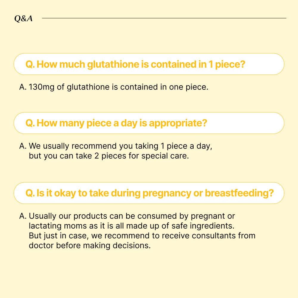 Ingredients L-Glutathione Yeast Extract (Glutathione 50%), Pullulan, Lemon Juice Powder[Dextrin, Lemon Juice (Lemon 100 %: American), Arabic Gum, Citric Acid, Mixture (Alcohol, Purified Water, Natural Flavoring, Natural Flavoring 2)], Vitamin C, Anhydrous Citric Acid, Hyaluronic Acid, Pectin, Enzymatically Modified Stevia, Natural Flavoring (Lemon Lime), B-cyclodextrin, Glycerin, Other Processed Edible Oils, Gardenia Yellow Color, L Dextrin, L Gardenia Yellow Color, Prolastin, Milk Thistle Extract Powder, Fish Collagen, Milk Ceramide, Vitamin E 50% Mixture(Dl-a-tocopheryl Acetate, Modified Starch, Glucose Syrup Powder, Silicon Dioxide), L-cysteine Hydrochloride, Modified Starch, Biotin