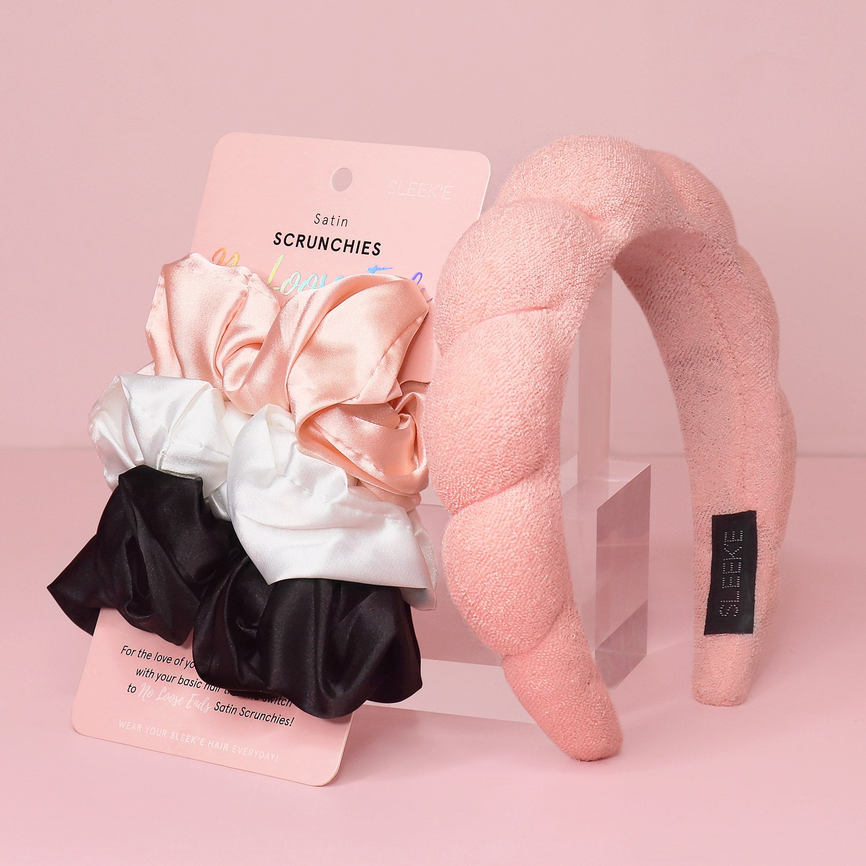 Cloud Nine Hair Essentials Bundle (Spa Headband & Satin Scrunchies)