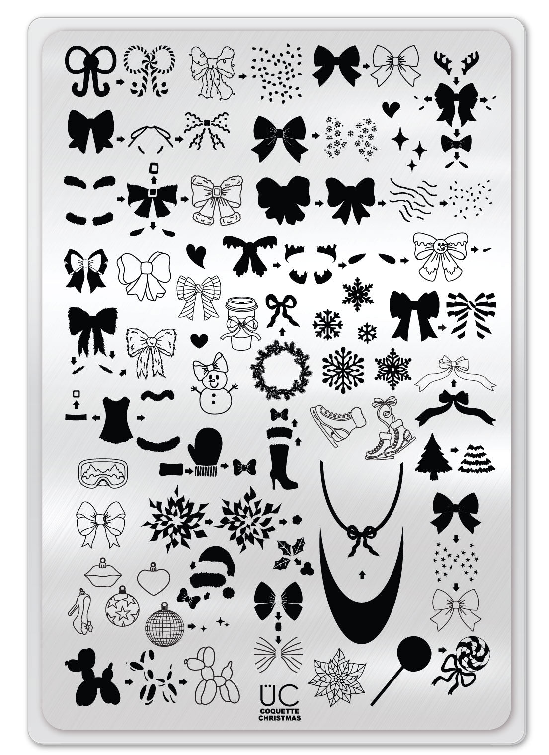 This plate is 9.5 cm by 14.5 cm and has coordinating single images down the center and a few on the sides. Most designs are 17 mm x 21 mm and are built to cover edge-to-edge on even the largest natural nail size. Are small nails left out? Never! Our designs are crafted to not be so overwhelming or large that you can't see what is on your nail - even if it's tiny!