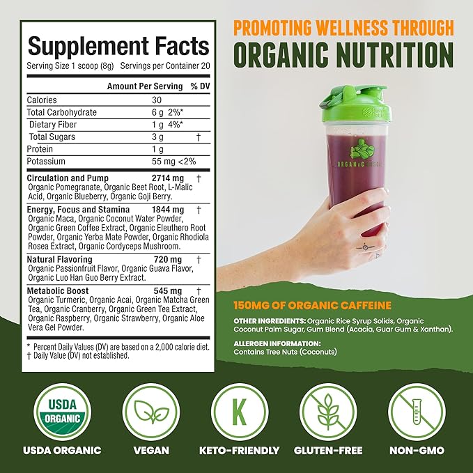 Feel the surge of clean energy and relentless stamina from our premium natural pre-workout.  A blend of mother nature's most nourishing herbs, fruits, and superfoods to unleash unstoppable workouts and profound energy.  150mg of Clean Caffeine per Serving.