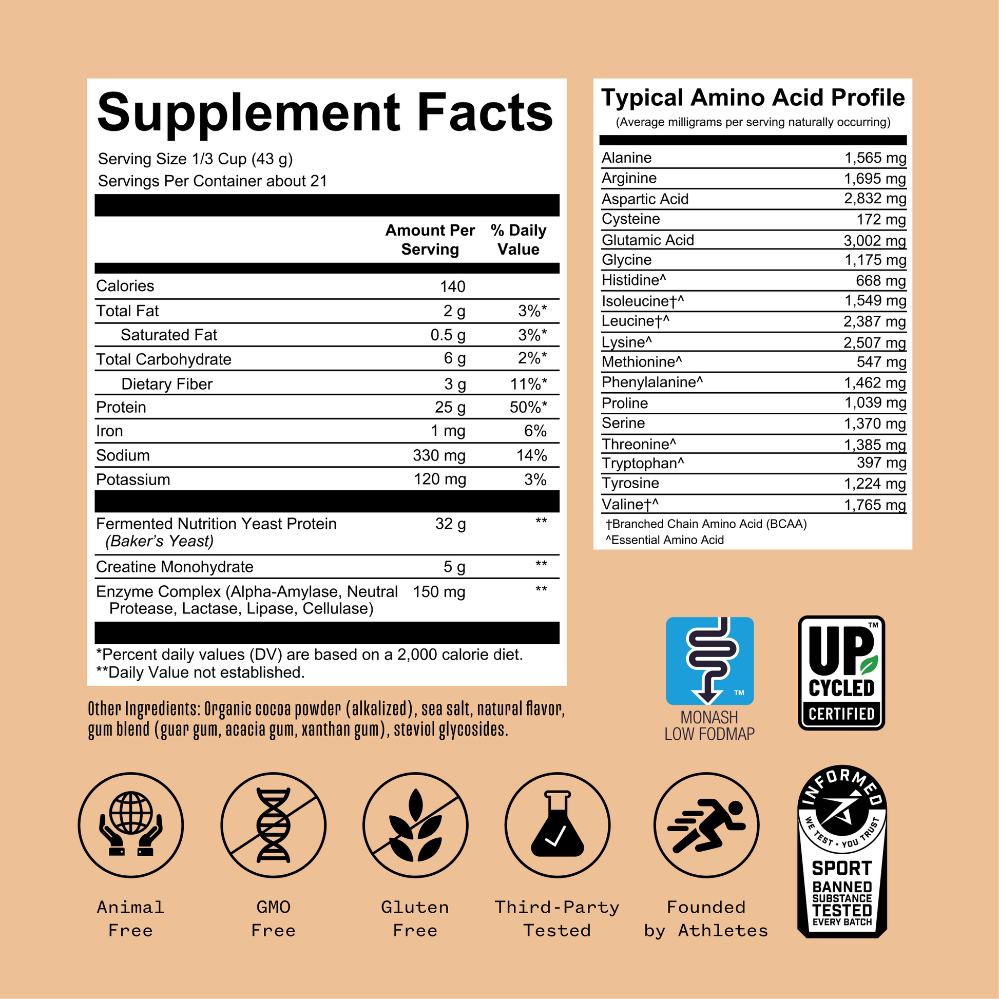 Fermented Nutrition Yeast Protein, Creatine Monohydrate, Digestive Enzyme Complex (Alpha-Amylase, Neutral Protease, Lactase, Lipase, Cellulase)
