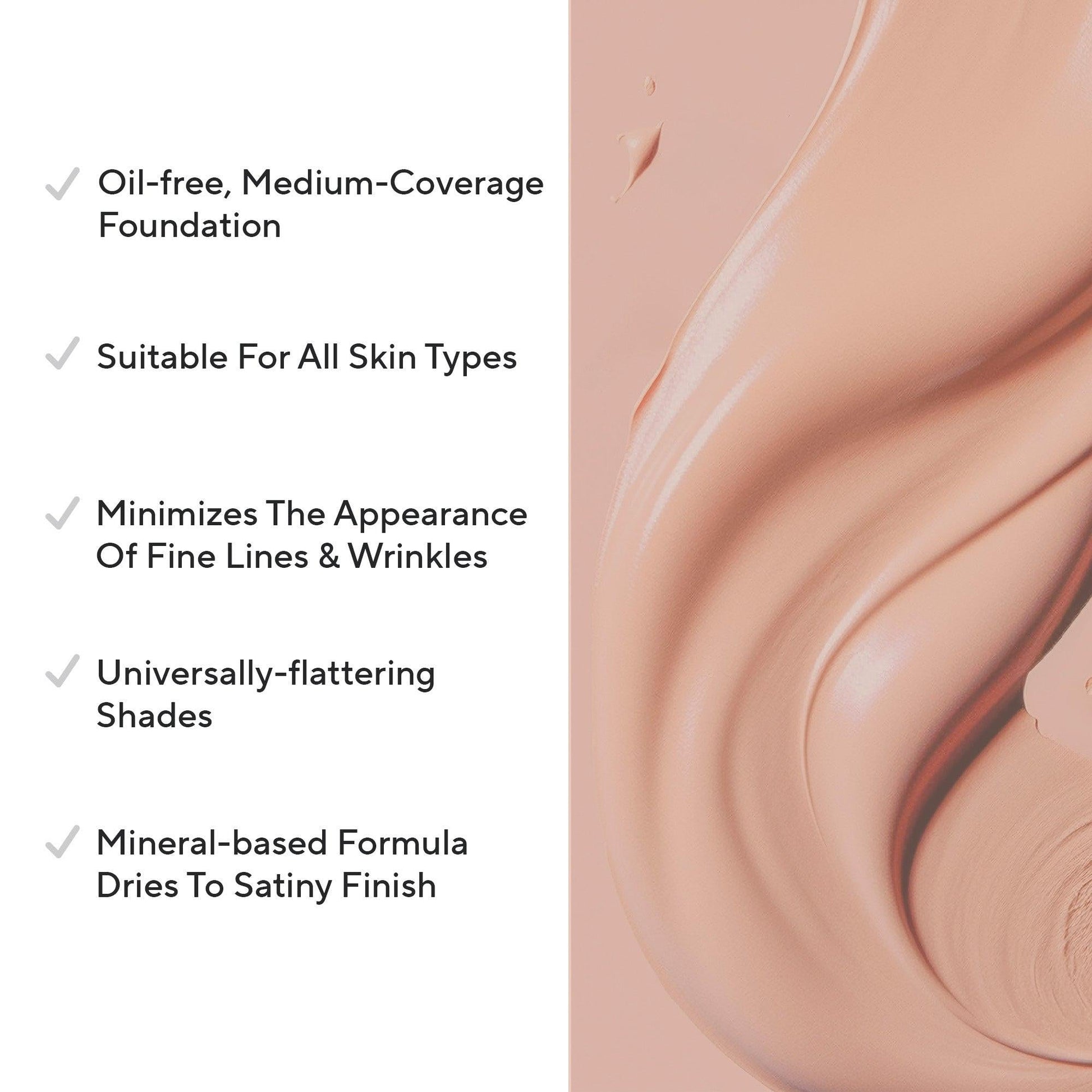 ABOUT: This skin-perfecting, medium-coverage creme foundation beautifully blends, builds, blurs, and buffs complexion to dewy, glowy, perfection with a mineral-based formula that glides on effortlessly and quickly dries to a satiny, luminescent finish. It works to minimize the appearance of fine lines and wrinkles while providing a light-feeling finish that is perfect for even the most sensitive of skin. Free from oil, this gentle water-gel formula provides unbeatable all-day hydration and won't tug or pull at sensitive skin tissue during application. Better yet, there is no fading, caking, or creasing throughout the day. Suitable for all skin types.