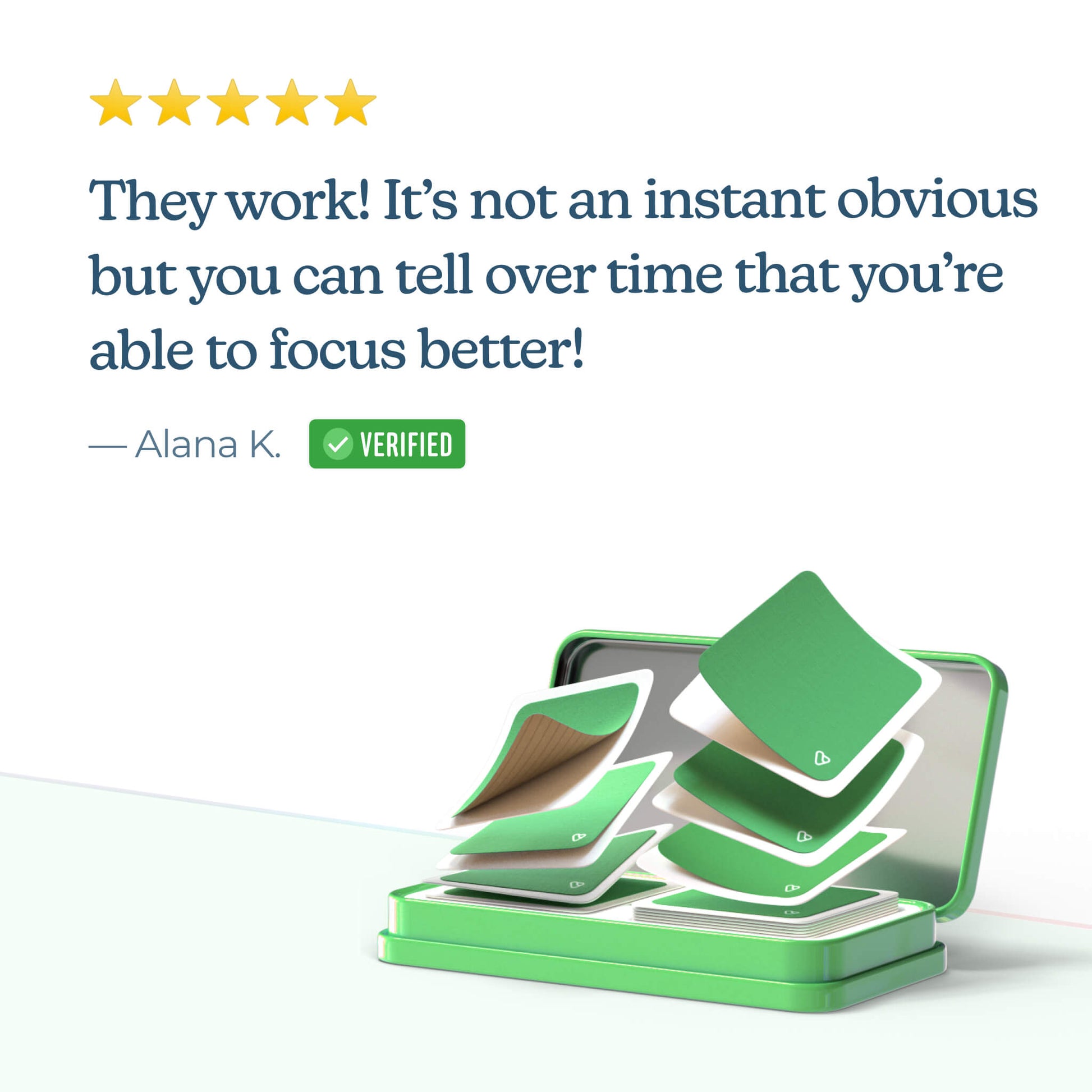 Support your body’s natural ability to stay focused and in flow, promoting clarity, concentration, and sustained energy — no pills, no stimulants, no crash.Vibrants bio-frequency patches for focus were created from a simple belief: your body already kn...