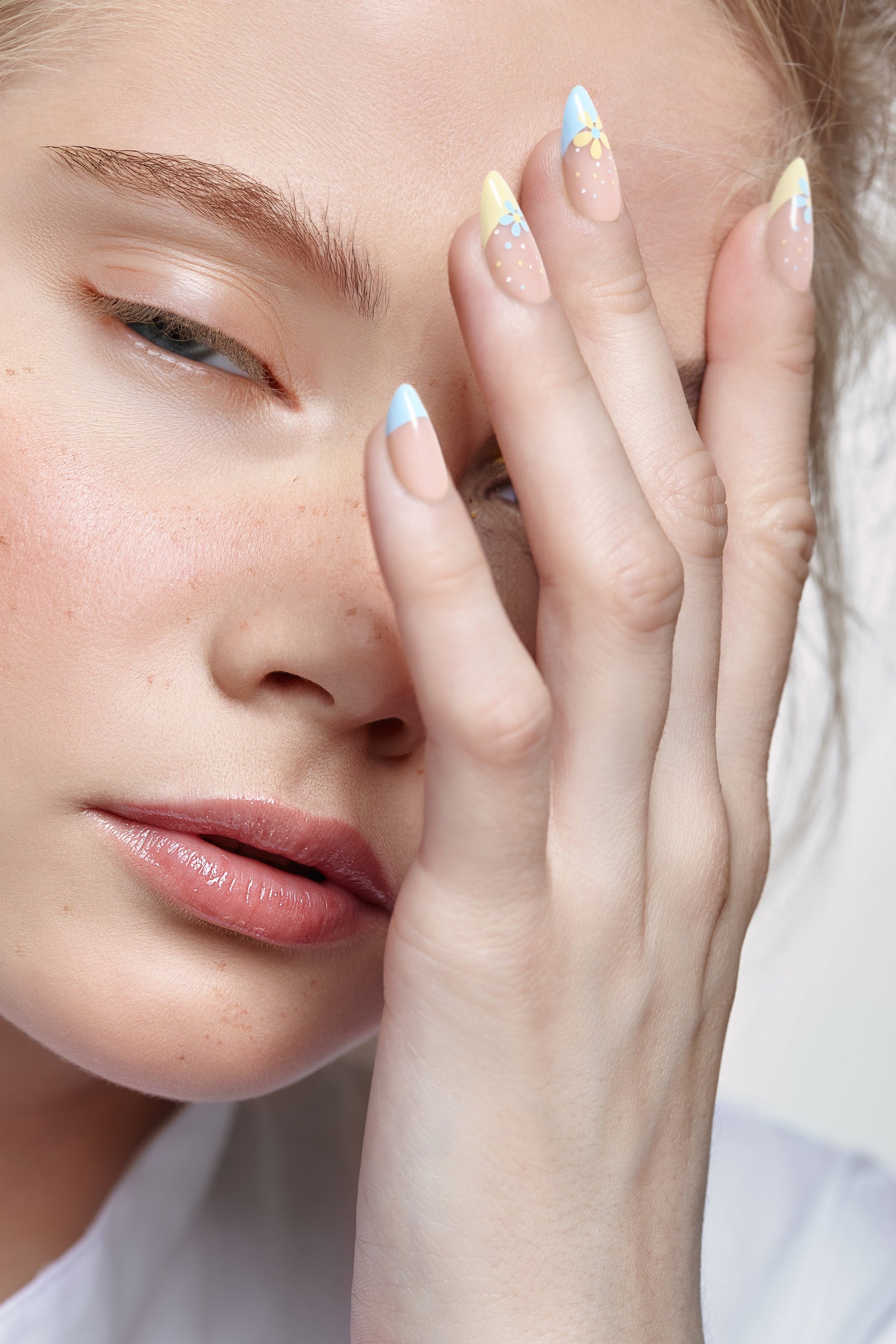 Sunny Halo press-on nails bring a playful charm with its short length, combining practicality and style effortlessly. Featuring soft pastel French tips and tiny daisy accents, this design adds a whimsical yet elegant touch to your look. Perfect for daily wear, it offers a polished, modern twist on timeless beauty.