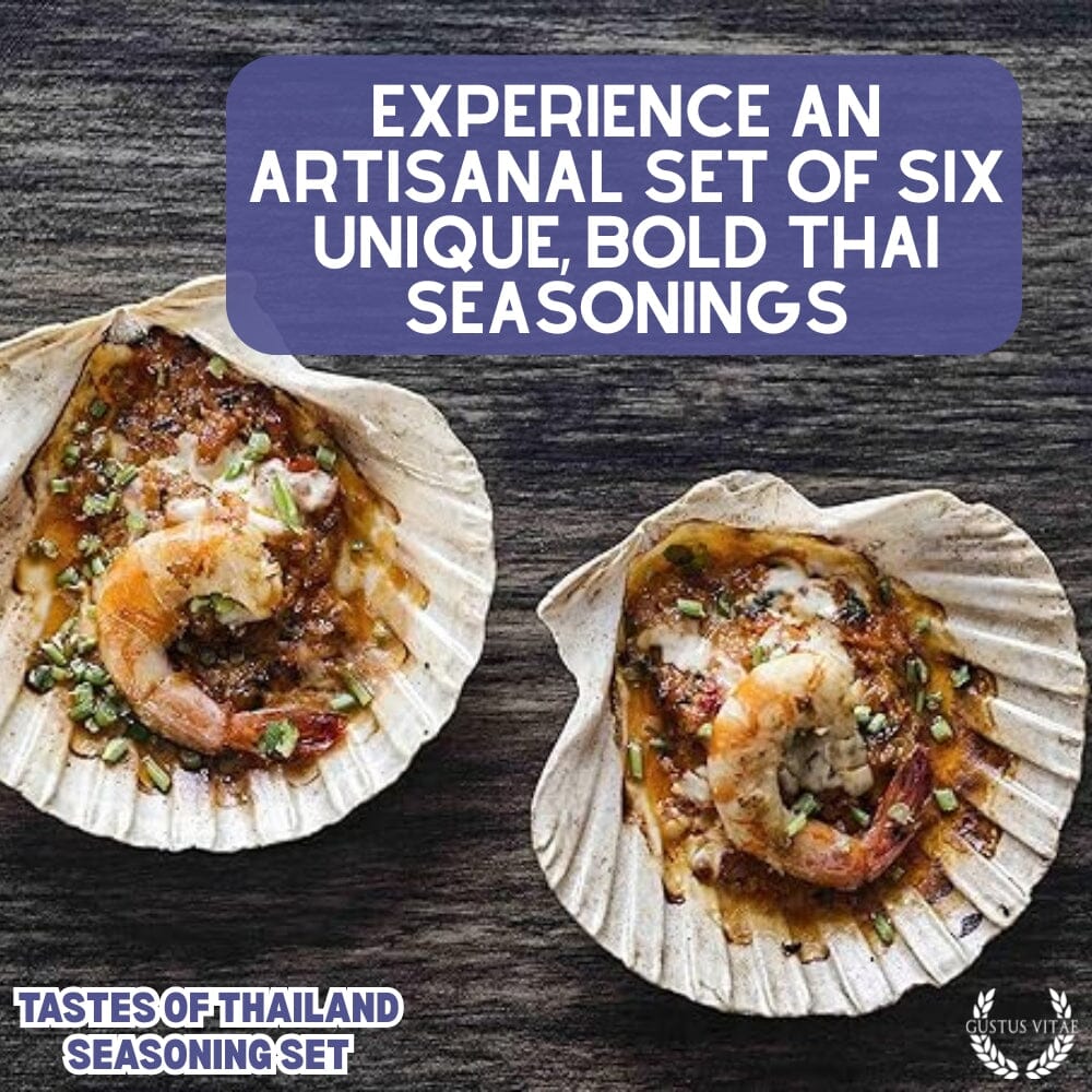 Harness the vibrant flavors of Thailand with this authentic, artisanal set of small batch seasonings, each one a unique homage to the many flavors of Thailand. Crafted by hand in the USA with sustainably sourced, ultra premium all-natural ingredients, all of these six unique spice blends faithfully honors unique elements of Thailand's bold cuisine, from succulent stir fry's to deeply flavorful soups and broths to delicate fish and meat dishes.