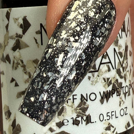 Add a touch of glam to your nails with our No Wipe Top Coat with Silver Flakes! Perfect for a flawless, glossy finish with a sparkling twist. Shine bright and skip the sticky residue—try it now!