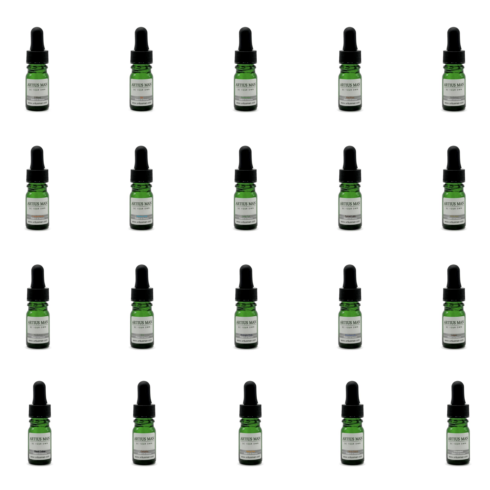 - Sample Kit Includes: 20, 5ml bottles of beard oil