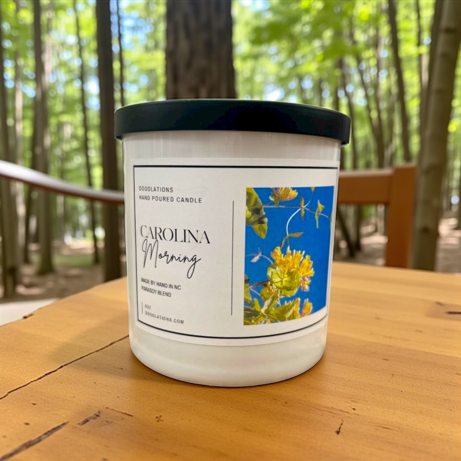 Every southerner knows this scent and will always remember it.  This beautiful candle is a clean honeysuckle scent with other floral notes that will remind you of your Carolina mornings.