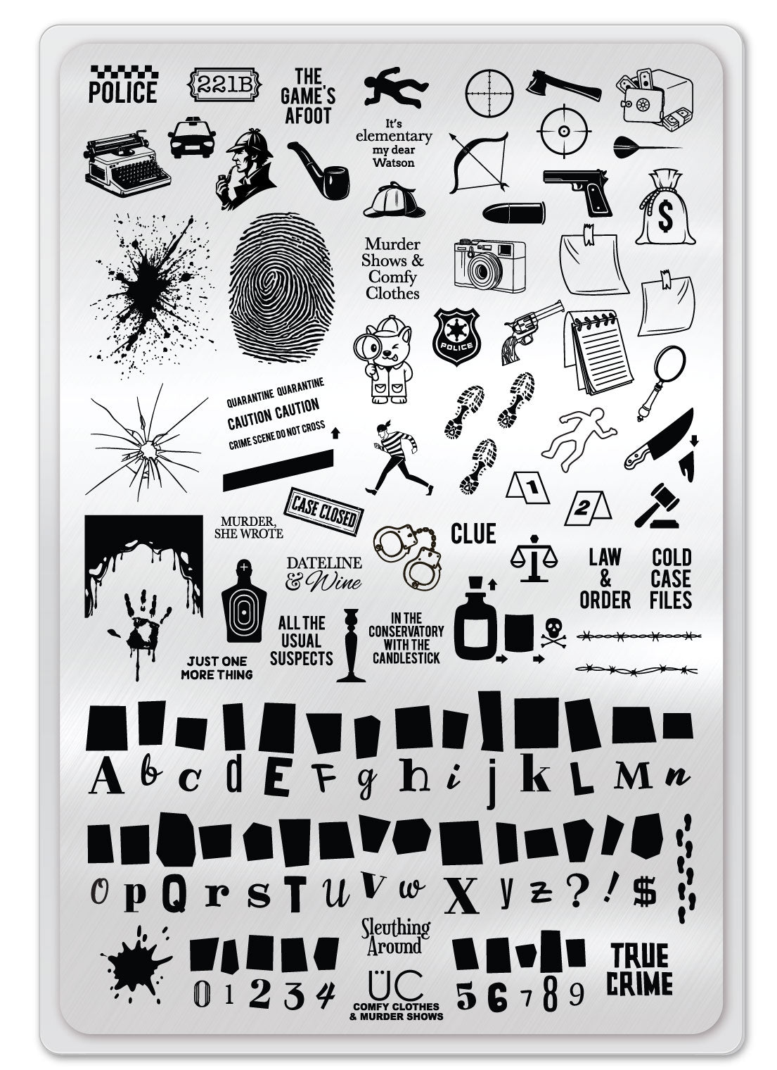 murder, police, crime, true crime, sherlock, Watson, cruiser, police car, fingerprint, blood, blood splatter, bow, gun, axe, sight, safe, cash, money, steal, crime take, caution, detective, spy, crook, footprint, notebook, law and order, cold case, magazine, letters, ransome, just one more thing, it's elementary my dear Watson, the game's afoot, treasure, murder she wrote, dateline and wine, in the conservatory with the candlestick, all the usual suspects, just one more thing, clue, poison, knife, gavel, blood, outline, badge, camera, sleuthing around, barbed wire, glass, bloody, drip, trace, killer, arrest