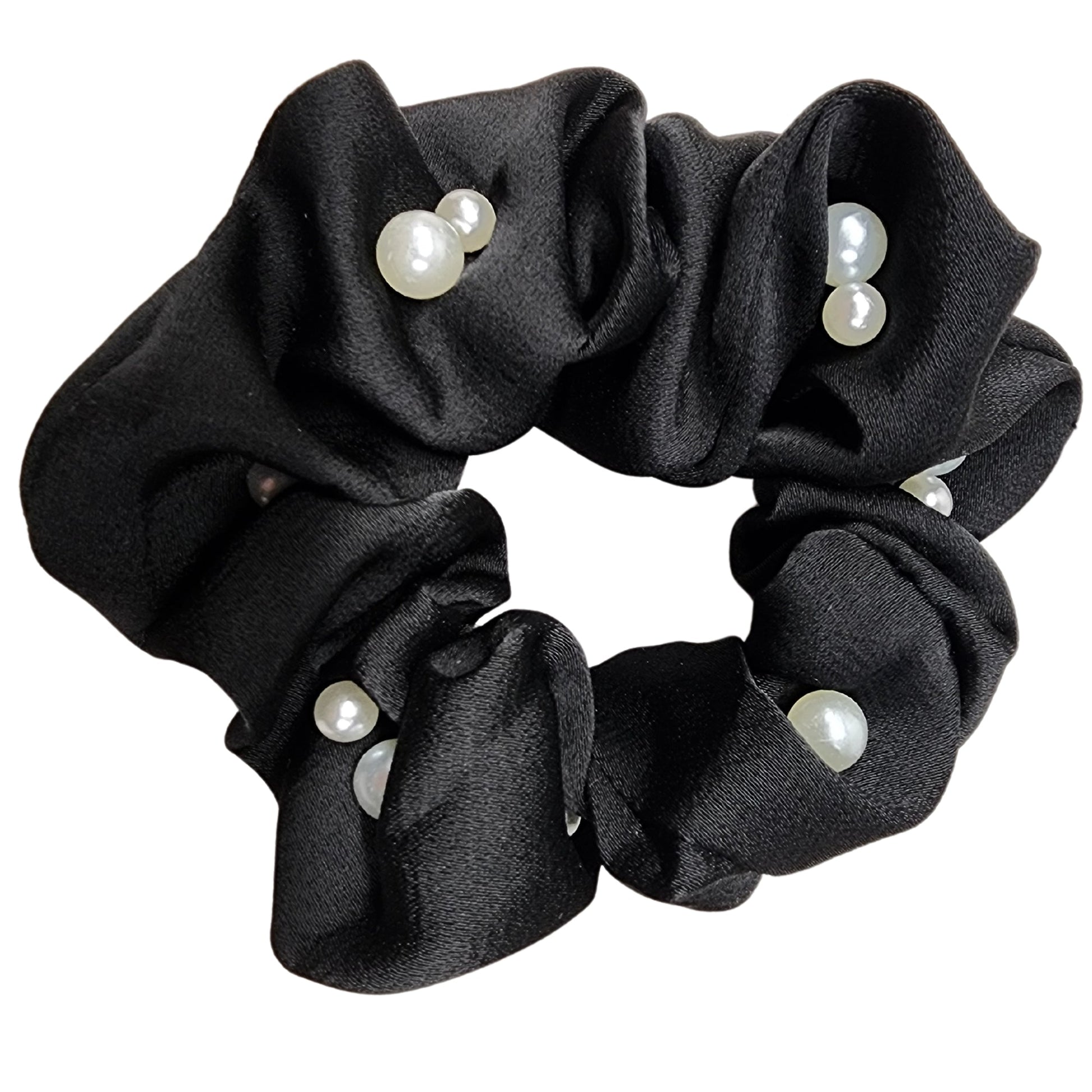 Adorned with delicate pearls, this Satin Pearl Scrunchie brings a classic and sophisticated charm to any hairstyle. Whether you're styling a ponytail, a bun, or simply wearing it on your wrist as a chic bracelet, this scrunchie provides both functionality and an air of refinement.