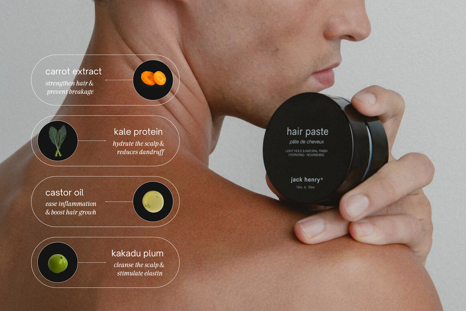 our innovative water-based medium hold hair paste doesn’t just give you amazing hair texture, definition and a natural shine, it’s also full of active plant and protein extracts that help strengthen hair follicles, prevent damage and promotes healthy hair growth. formulated without pvp or petroleum-derived ingredients, this is the next evolution of haircare. 24-hour hold. non-greasy. suitable for all hair types.