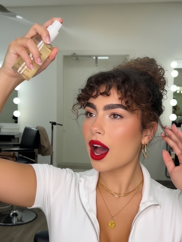 Spray evenly from mid-lengths to ends—avoiding the roots to keep volume intact.