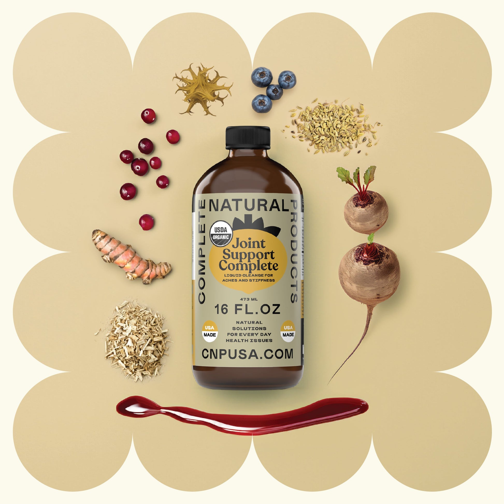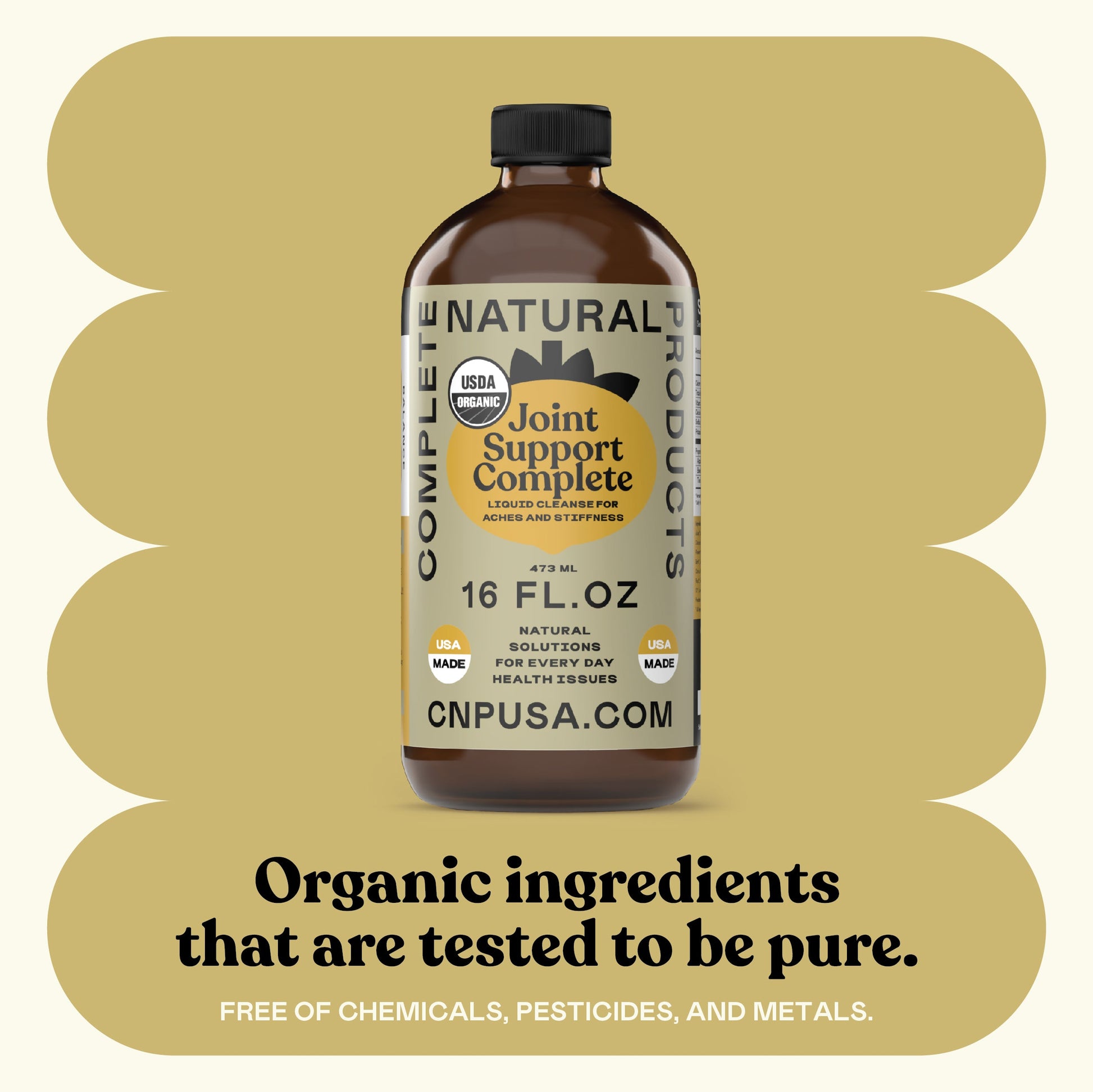 Joint Support Complete is an all natural concentrated Organic and Kosher liquid formula that helps with the symptoms and issues associated with alleviating the stiffness and aches in joints, and then supporting essential lubricating fluids for proper joint health and movement, naturally.