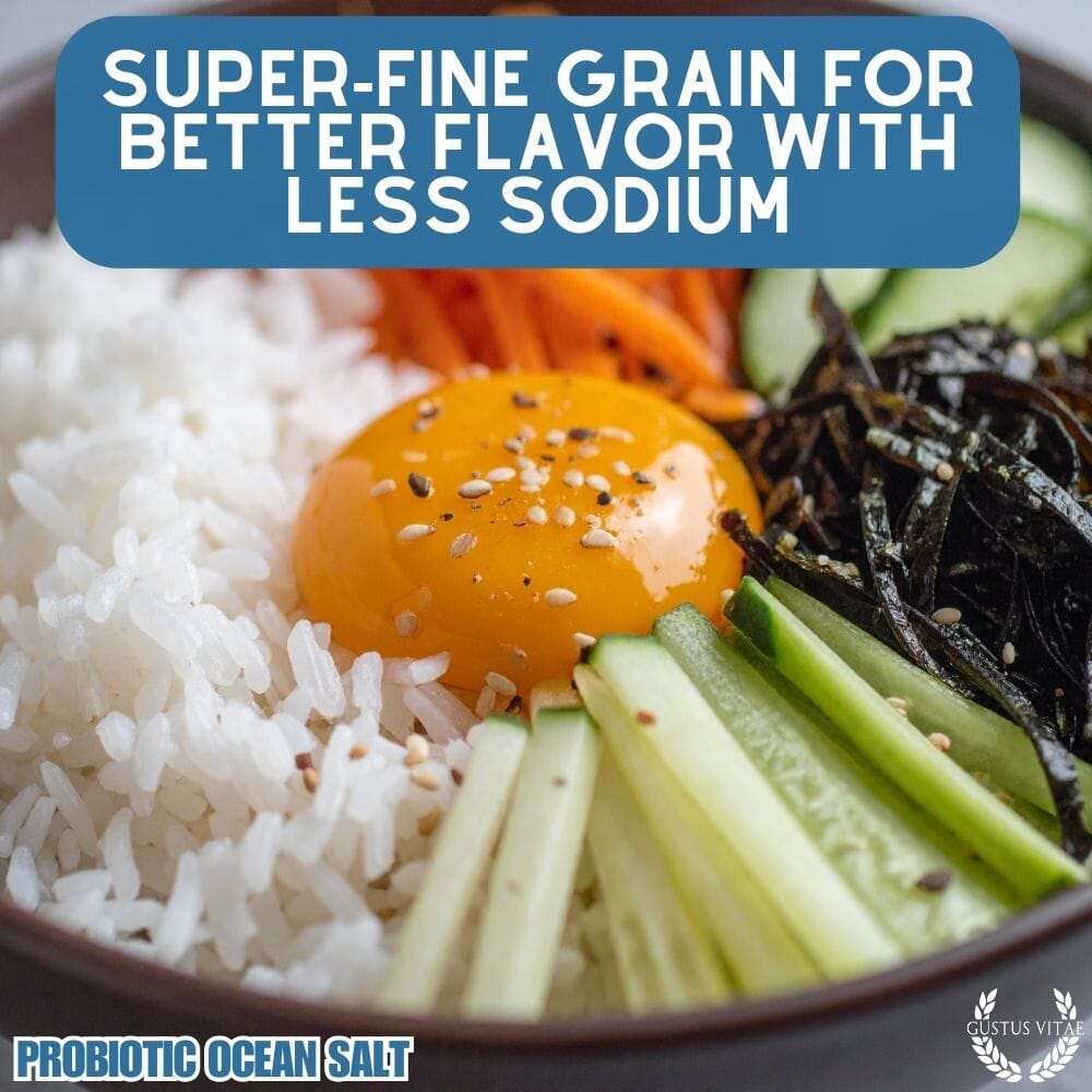 Crafted from a sustainably sourced base of super-fine Pacific Ocean sea salt, the careful addition of selected probiotic enzymes (at least 15 Billion CFU/gram) provide myriad health benefits, without altering the taste of the sea salt. Among those proven benefits: