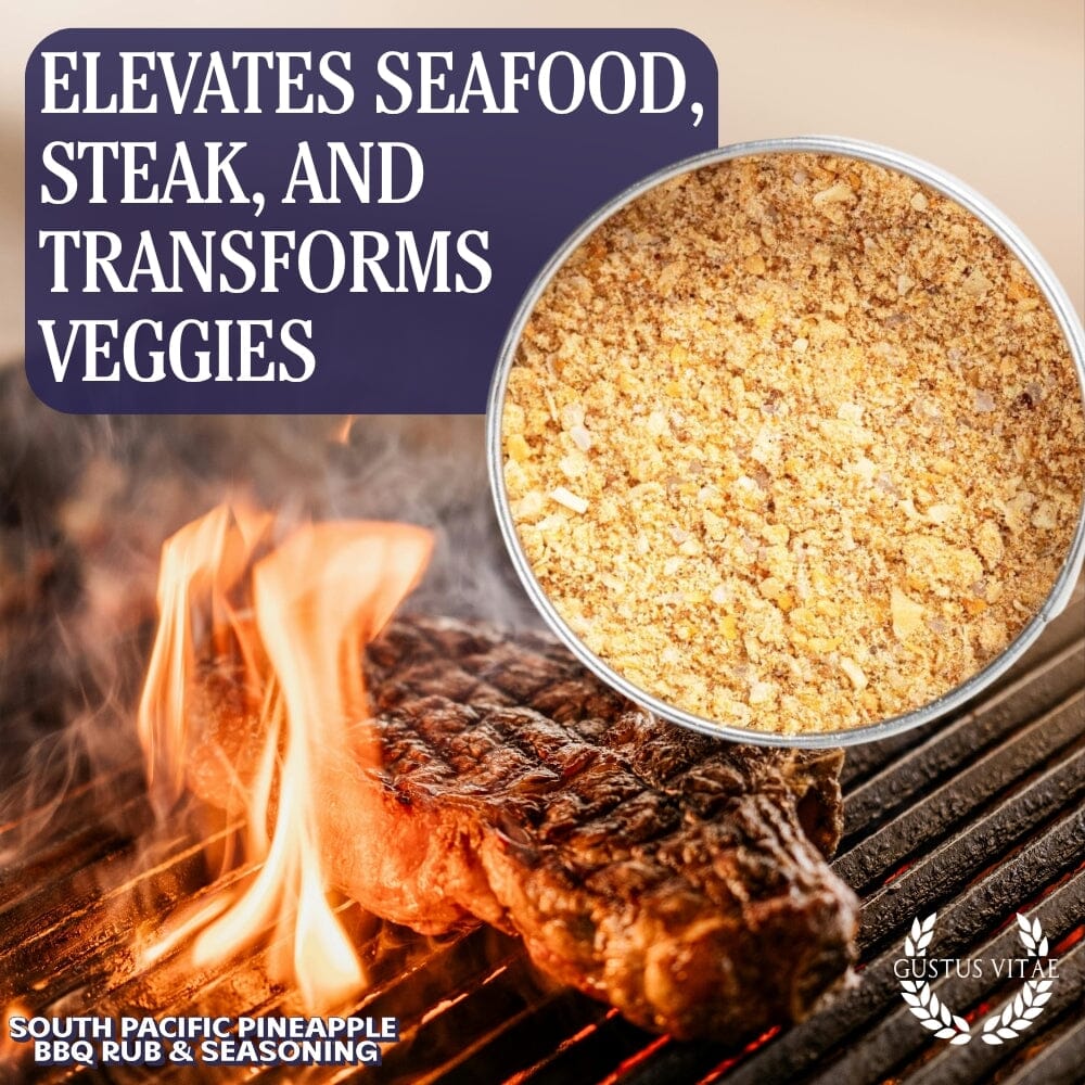 Use this artisanal spice mix & rub to craft unforgettable flavors with all manner of seafoods, from crab & lobster to scallops & shrimp, and elevate big steak cuts and hearty smoker favorites like pork shoulder and sausage.  Our South Pacific Pineapple BBQ Rub brings out the best in roasted veggies, foil wrapped potatoes, and is perfect for richly seasoning everything from primal cuts & baby back ribs to ceviches & crudos.