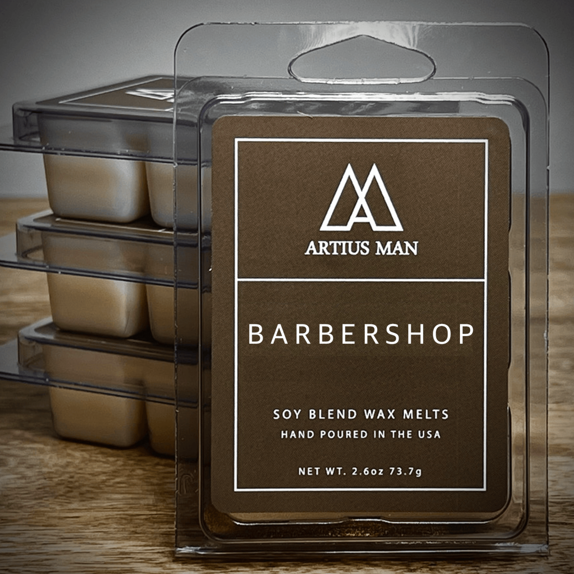 These melts are handcrafted by Artius Man at our facility. The wax is hand-poured into clear six cube molds. The scent from the melts are a nice complement to any room of the house or office and are a great alternative to our barbershop candle if an open flame is an issue. They also make great gifts so purchase one today!