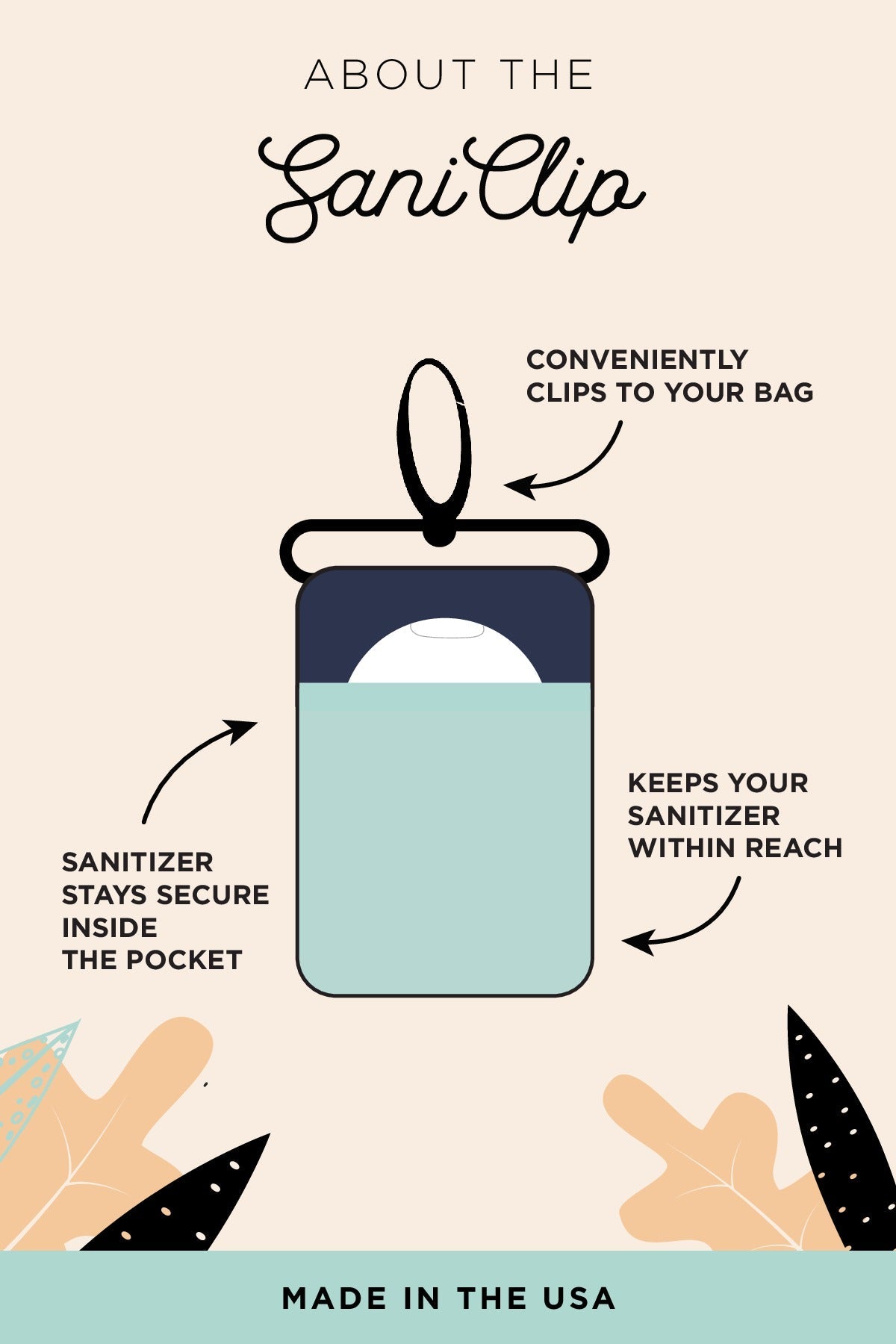 The SaniClip was designed to save you time! Stop digging through your purse for your hand sanitizer!